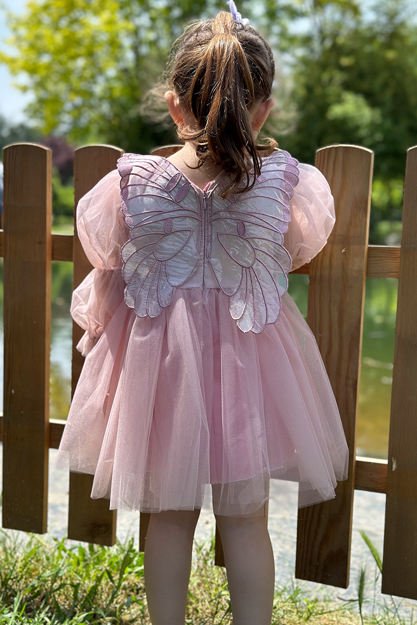 Büyüleyici Kelebek Kanatlı Kız Çocuk Özel Gün Elbisemizle küçük kızınızı tuhaf bir kelebeğe dönüştürün.; Bu büyülü elbise, çarpıcı kelebek kanadı vurgularına, pamuklu iç astarın rahatlığına ve saten kumaşın zarafetine sahiptir.; Çocuğunuz özel günlerde büyülü bir dünyaya uçmaya hazır olacak.