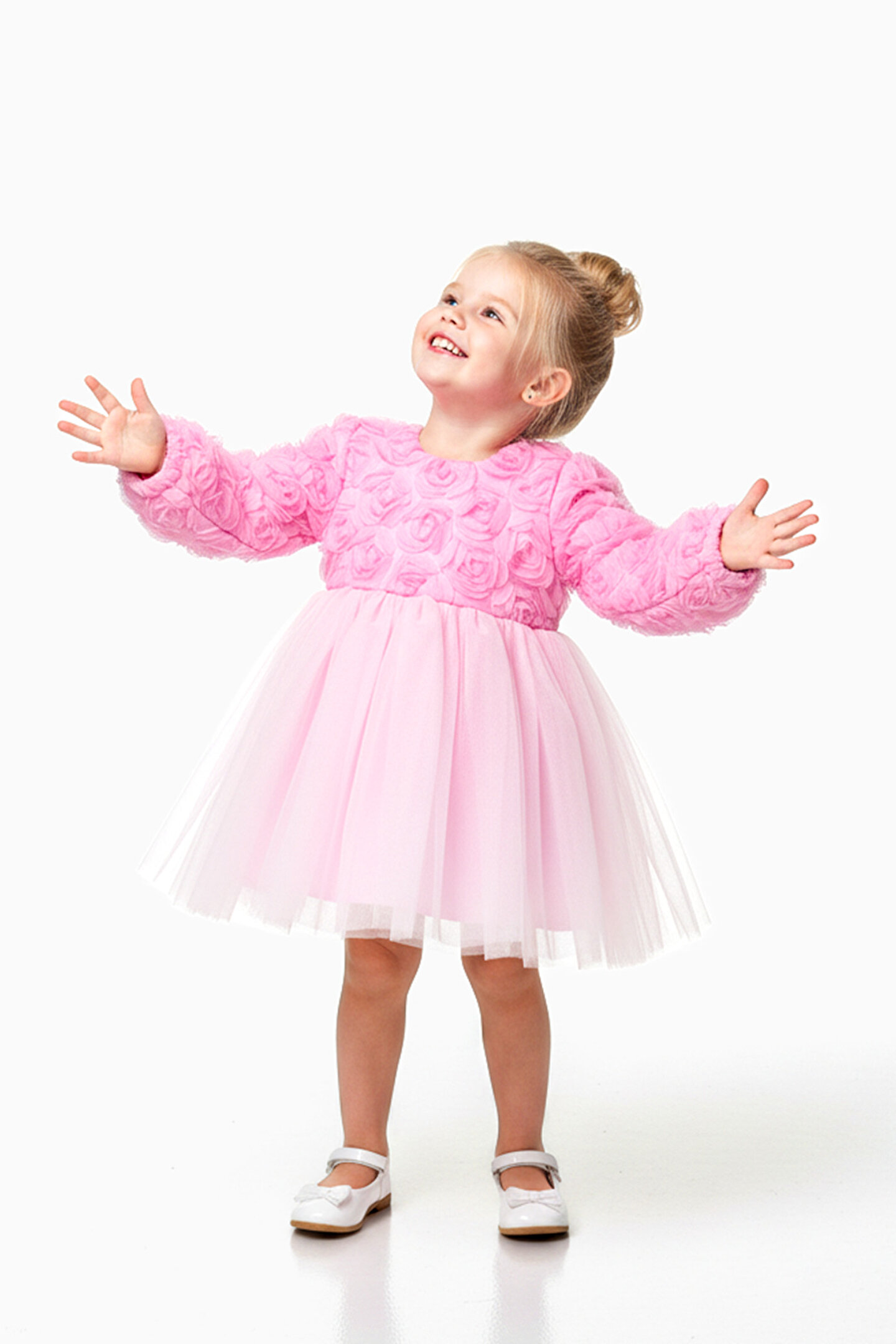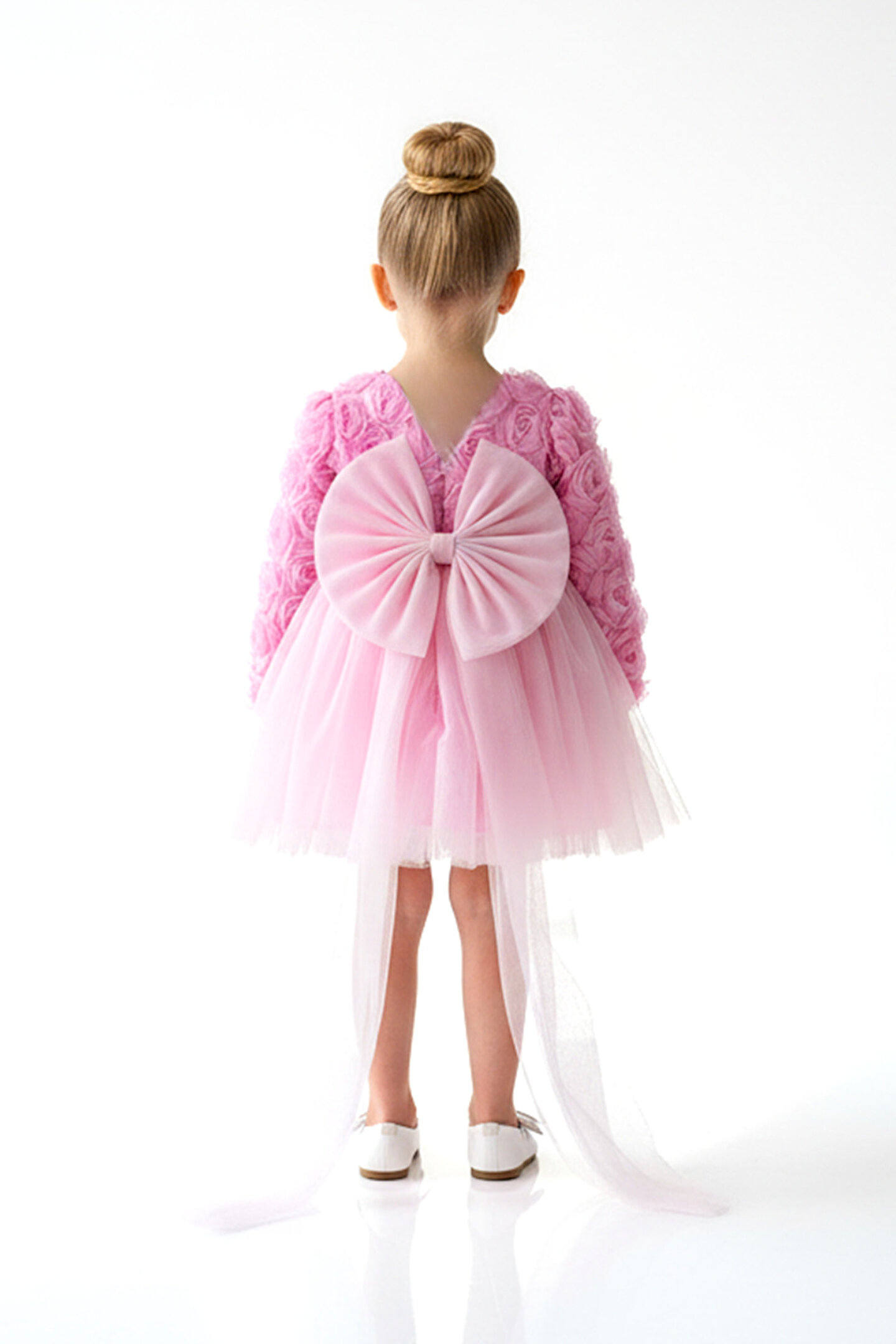 Baby Animals Kız Bebek Kız Çocuk Doğum Günü Parti Düğün Elbise Uzunkollu Güllü Fiyonklu Tüllü Tütü Astarlı