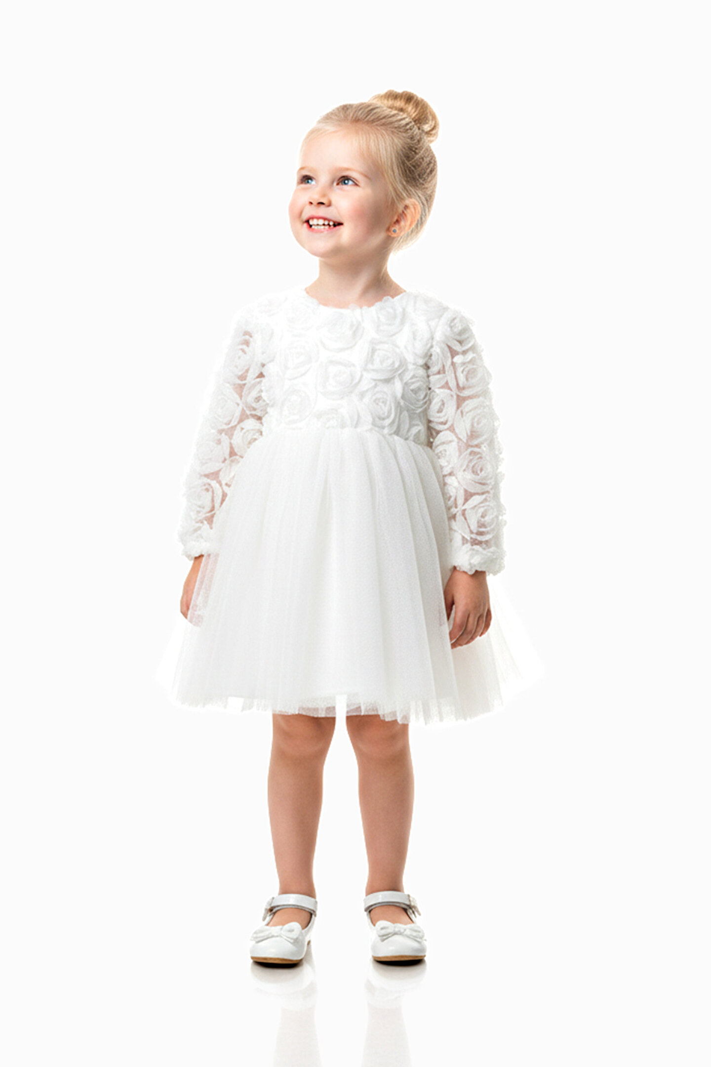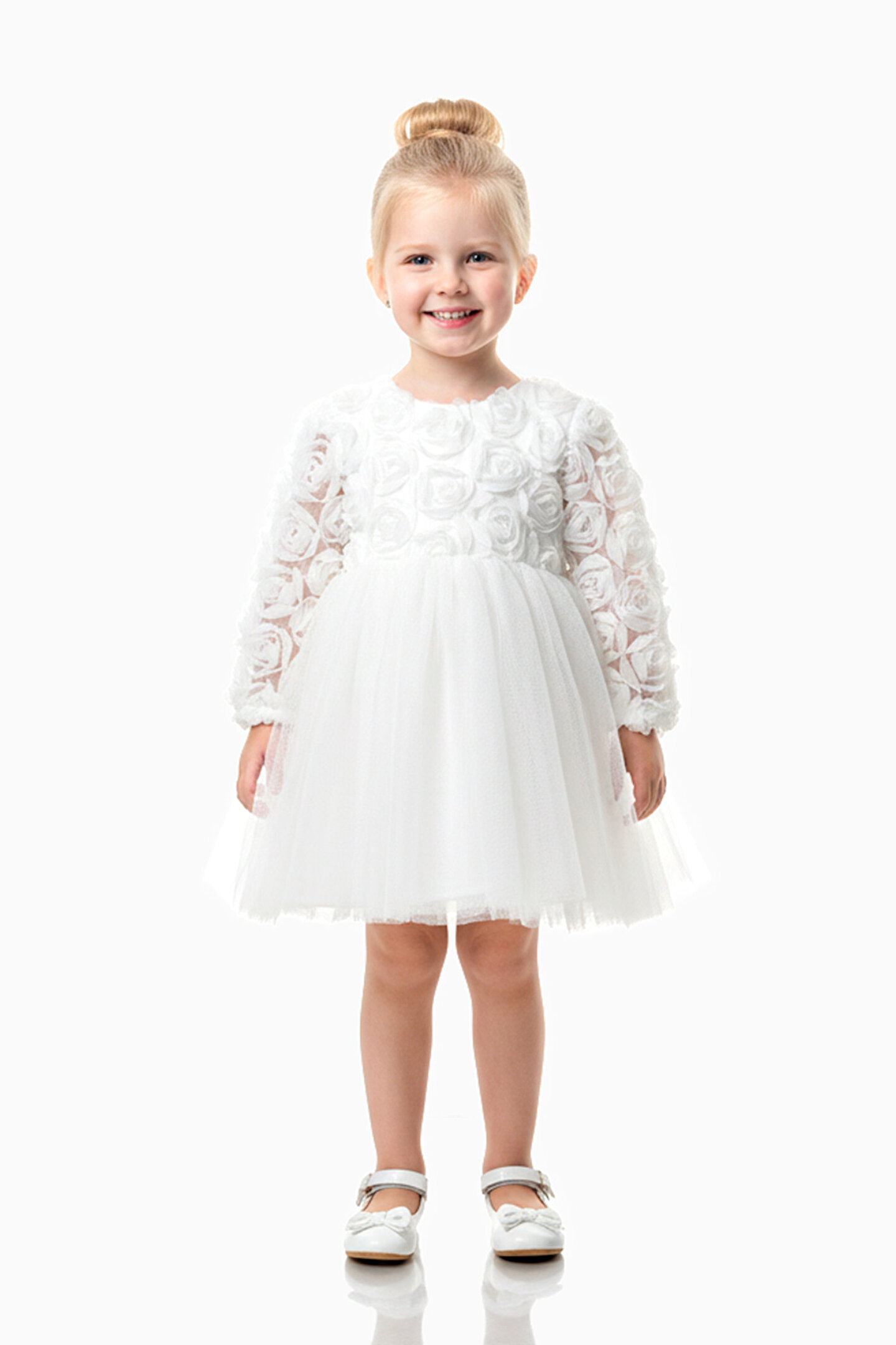 Baby Animals Kız Bebek Kız Çocuk Doğum Günü Parti Düğün Elbise Uzunkollu Güllü Fiyonklu Tüllü Tütü Astarlı