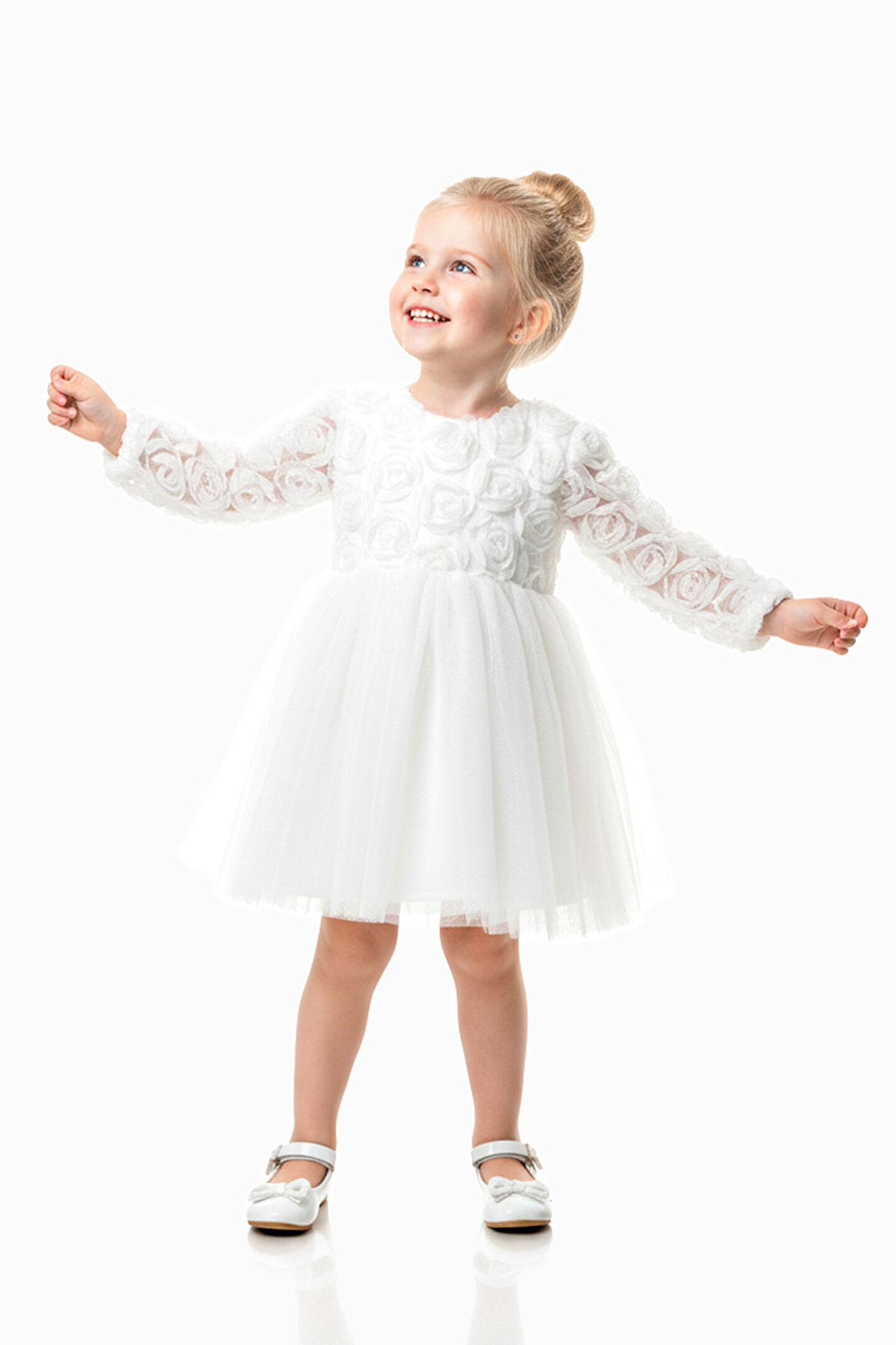 Baby Animals Kız Bebek Kız Çocuk Doğum Günü Parti Düğün Elbise Uzunkollu Güllü Fiyonklu Tüllü Tütü Astarlı