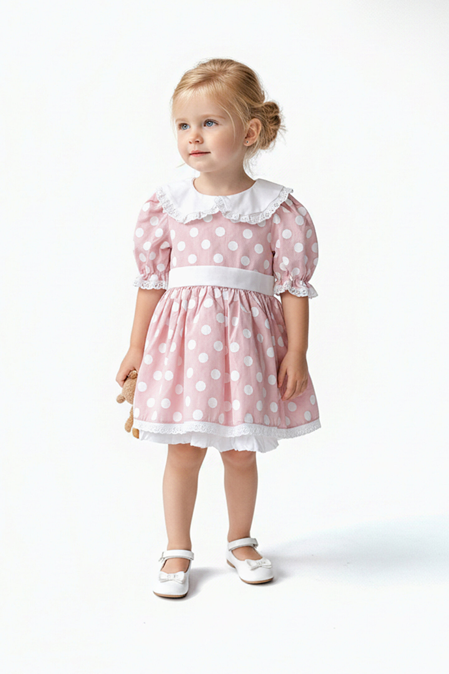 Baby Animals Kız Bebek Kız Çocuk Doğum Günü Parti Düğün Elbise Yarım Kol Astarlı Puanlı Fiyonklu Elbise
