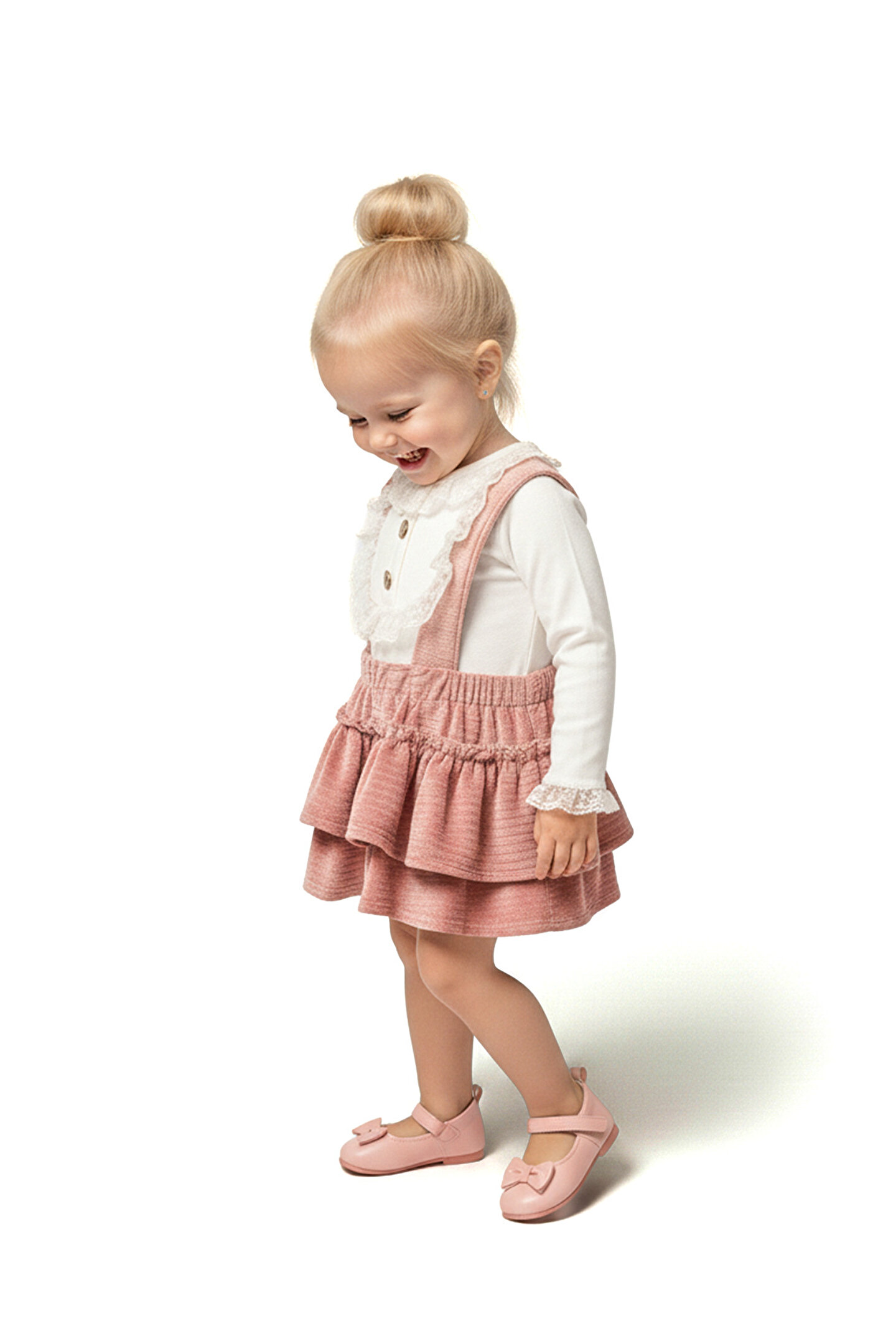 Baby Animals Kız Bebek Kız Çocuk Doğum Günü Parti Düğün Kadife Salopet Slopet Dantelli Uzun Kol Salopet