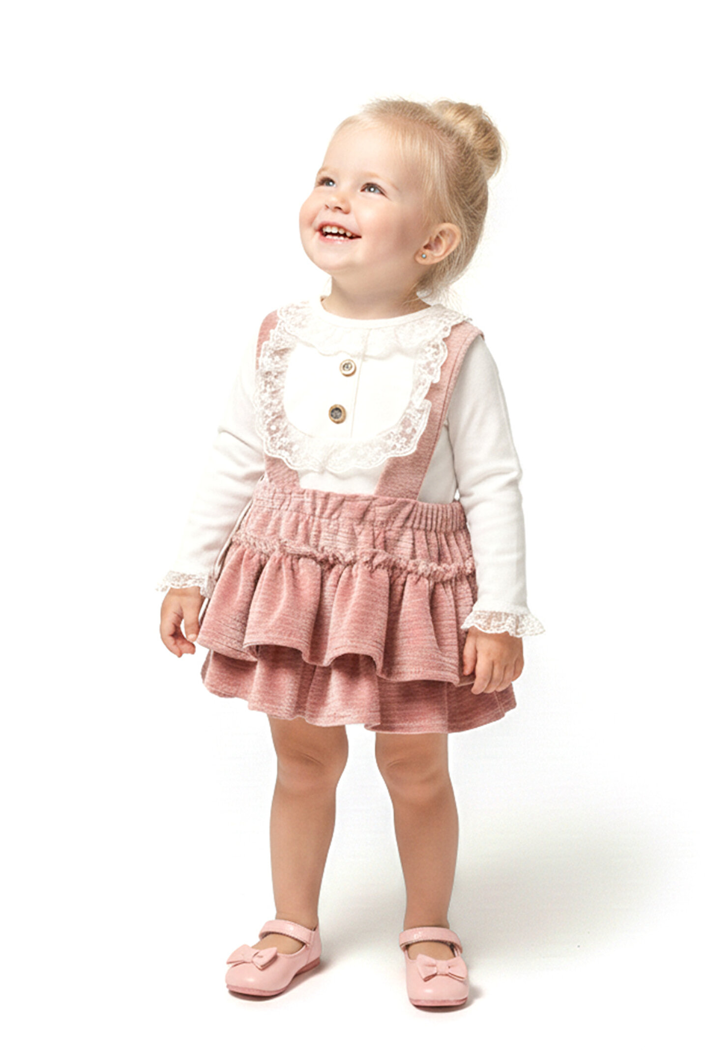 Mevsimlik Uzun Kollu Dantel Detaylı Kız Çocuk Elbise Salopet: Küçük prensesinizin yaz mevsiminde özel günlerde zarafetini ve şıklığını ön plana çıkaracak bu elbise Salopet, önünde bulunan fiyonk detayı ve dantel işlemeleriyle tasarlanmıştır.; Ayrıca etek kısmında bulunan yırtmaç detayı, hareket özgürlüğü sağlarken bebeğinizin zarif bir görünüm sergilemesini sağlar.; Özellikler: Dantel Detaylar: Elbisenin Salopet ön kısmında ve kollarda bulunan dantel detaylar, zarafet ve incelik katarken, küçük prensesinizin görünümünü daha etkileyici hale getirir.; Önünde Fiyonk Detayı: Elbisenin ön kısmında bulunan fiyonk detayı, sevimliliği ve şıklığı artırır.; Küçük prensesinizin görünümüne hoş bir dokunuş ekler.; Yırtmaç Detayı: Etek kısmında bulunan yırtmaç detayı, hareket özgürlüğü sağlarken, elbisenin tasarımına dinamizm katar.; Uzun Kollu Tasarım:Rahatlıkla giyilebilecek Uzun kollu tasarım, bebeğinizin serin kalmasını sağlar ve özgürce hareket etmesine olanak tanır.; Mevsimlik Kullanıma Uygun: Hafif yapısı ve nefes alabilen kumaşıyla yaz aylarında rahatlıkla giyilebilir.; Özel Günler İçin Uygun: Özel günlerde tercih edilebilecek şık tasarımıyla bebeğinizin her anında göz kamaştırmasını sağlar.; Bu yırtmaçlı, önü fiyonklu ve dantel detaylı Uzun kollu kız çocuk elbisesi Salopet, küçük prensesinizin serin ve şık kalmasını sağlarken, aynı zamanda özel günlerde de zarafetini tamamlar.; Zarif detaylarıyla bezenmiş bu elbise Romper, bebeğinizin tarzını ve güzelliğini ön plana çıkarır.