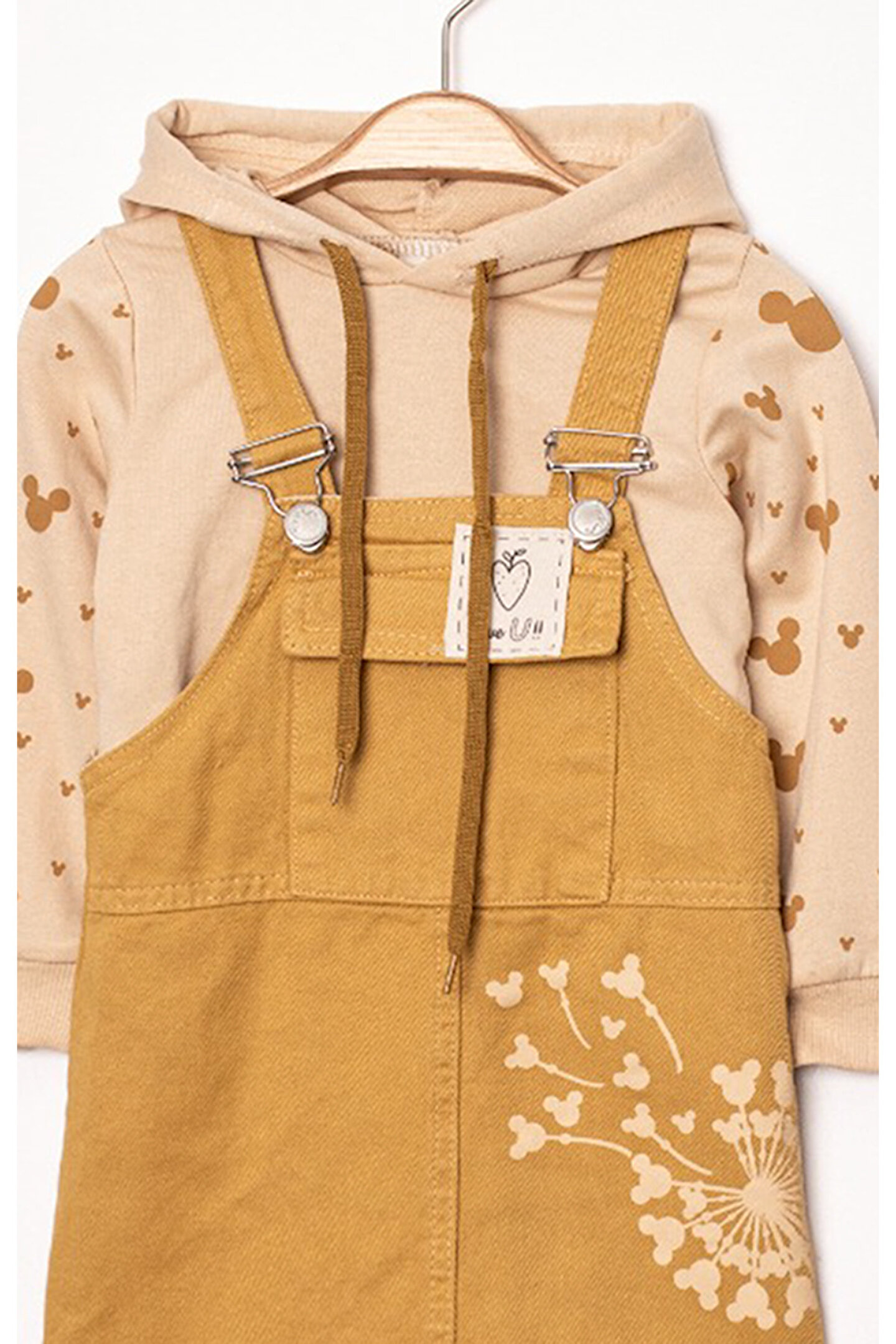 Baby Animals Kız Bebek Kız Çocuk Salopet Slopet Bahçıvan Elbise 2 li Takım Uzun Kollu Çantalı Elbise