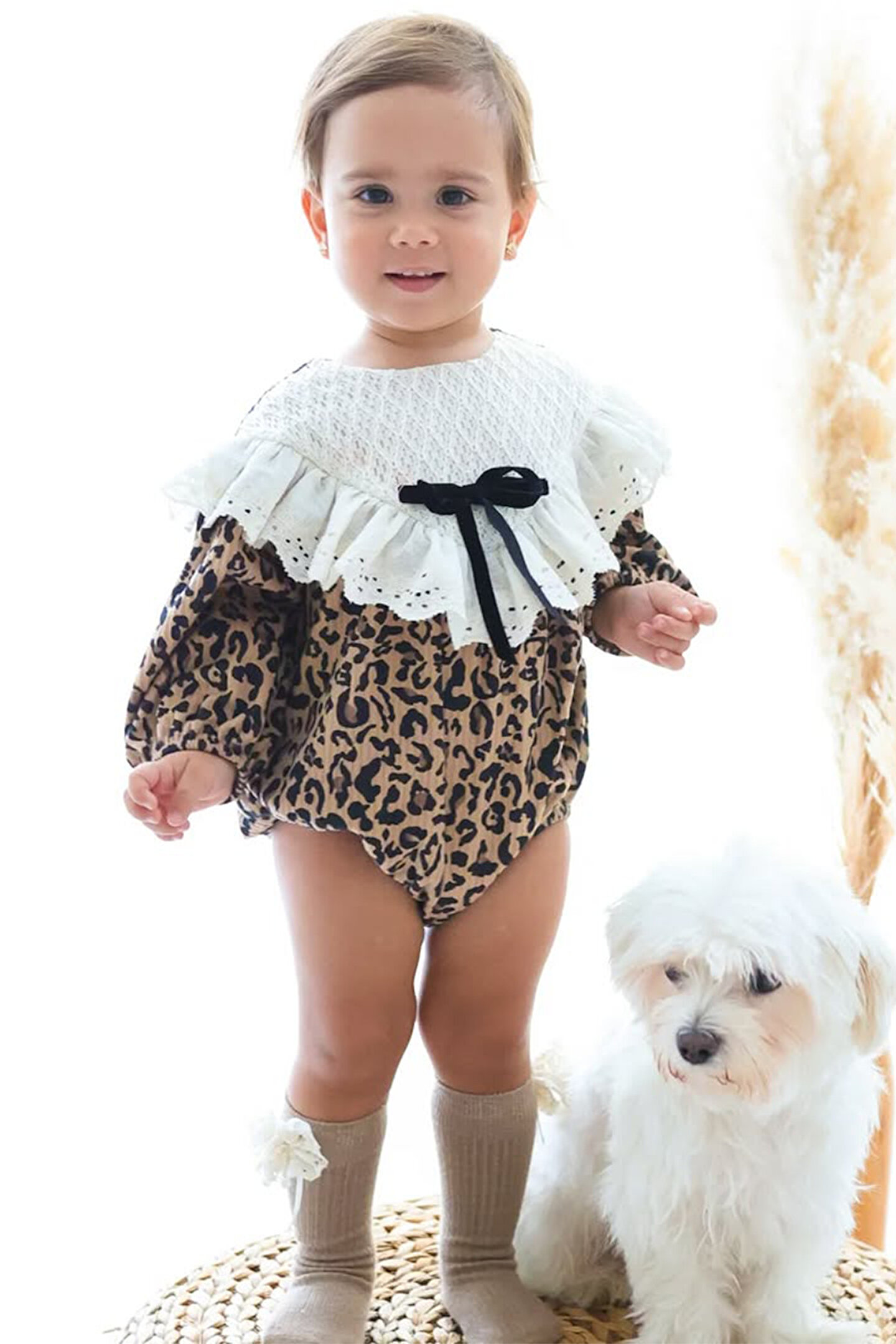 Baby Animals Kız Bebek Romper Kız Çocuk Romper Doğum Günü Parti Düğün Romper Dantelli Uzun Kol Romper