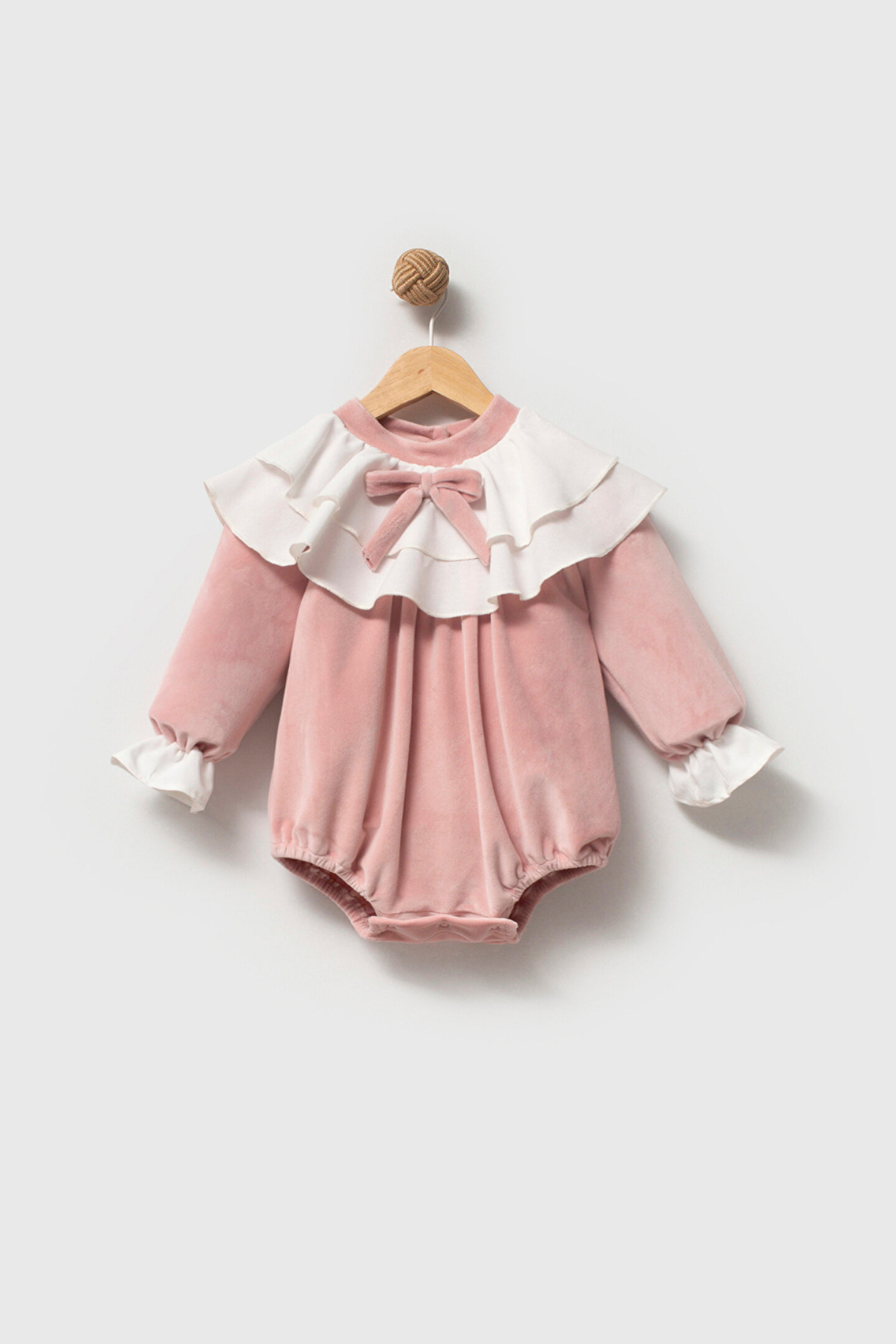 Mevsimlik Uzun Kollu Dantel Detaylı Kız Çocuk Elbise Romper: Küçük prensesinizin yaz mevsiminde özel günlerde zarafetini ve şıklığını ön plana çıkaracak bu elbise Romper, önünde bulunan fiyonk detayı ve dantel işlemeleriyle tasarlanmıştır.; Ayrıca etek kısmında bulunan yırtmaç detayı, hareket özgürlüğü sağlarken bebeğinizin zarif bir görünüm sergilemesini sağlar.; Özellikler: Dantel Detaylar: Elbisenin Romper ön kısmında ve kollarda bulunan dantel detaylar, zarafet ve incelik katarken, küçük prensesinizin görünümünü daha etkileyici hale getirir.; Önünde Fiyonk Detayı: Elbisenin ön kısmında bulunan fiyonk detayı, sevimliliği ve şıklığı artırır.; Küçük prensesinizin görünümüne hoş bir dokunuş ekler.; Yırtmaç Detayı: Etek kısmında bulunan yırtmaç detayı, hareket özgürlüğü sağlarken, elbisenin tasarımına dinamizm katar.; Uzun Kollu Tasarım:Rahatlıkla giyilebilecek Uzun kollu tasarım, bebeğinizin serin kalmasını sağlar ve özgürce hareket etmesine olanak tanır.; Mevsimlik Kullanıma Uygun: Hafif yapısı ve nefes alabilen kumaşıyla rahatlıkla giyilebilir.; Özel Günler İçin Uygun: Özel günlerde tercih edilebilecek şık tasarımıyla bebeğinizin her anında göz kamaştırmasını sağlar.; Bu yırtmaçlı, önü fiyonklu ve dantel detaylı Uzun kollu kız çocuk elbisesi Romper, küçük prensesinizin serin ve şık kalmasını sağlarken, aynı zamanda özel günlerde de zarafetini tamamlar.; Zarif detaylarıyla bezenmiş bu elbise Romper, bebeğinizin tarzını ve güzelliğini ön plana çıkarır.