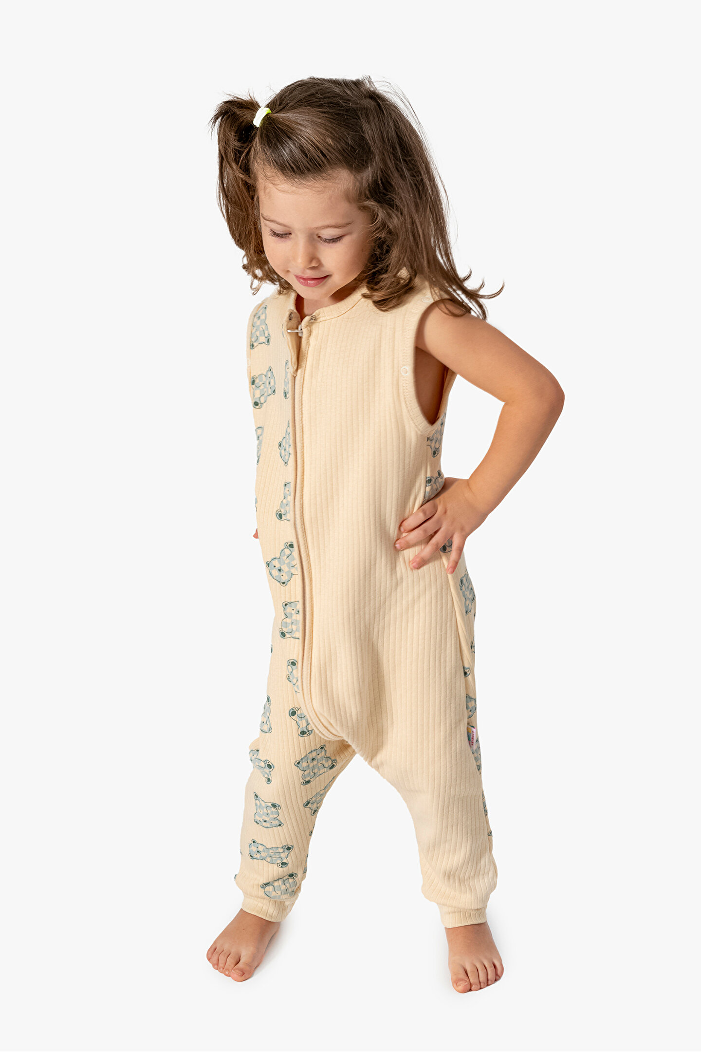 Baby Animals Kız Erkek Unisex Mevsimlik Kolları Çıkan Çift Kat Organik %100 Doğal Pamuk Bebek Çocuk Uyku Tulumu
