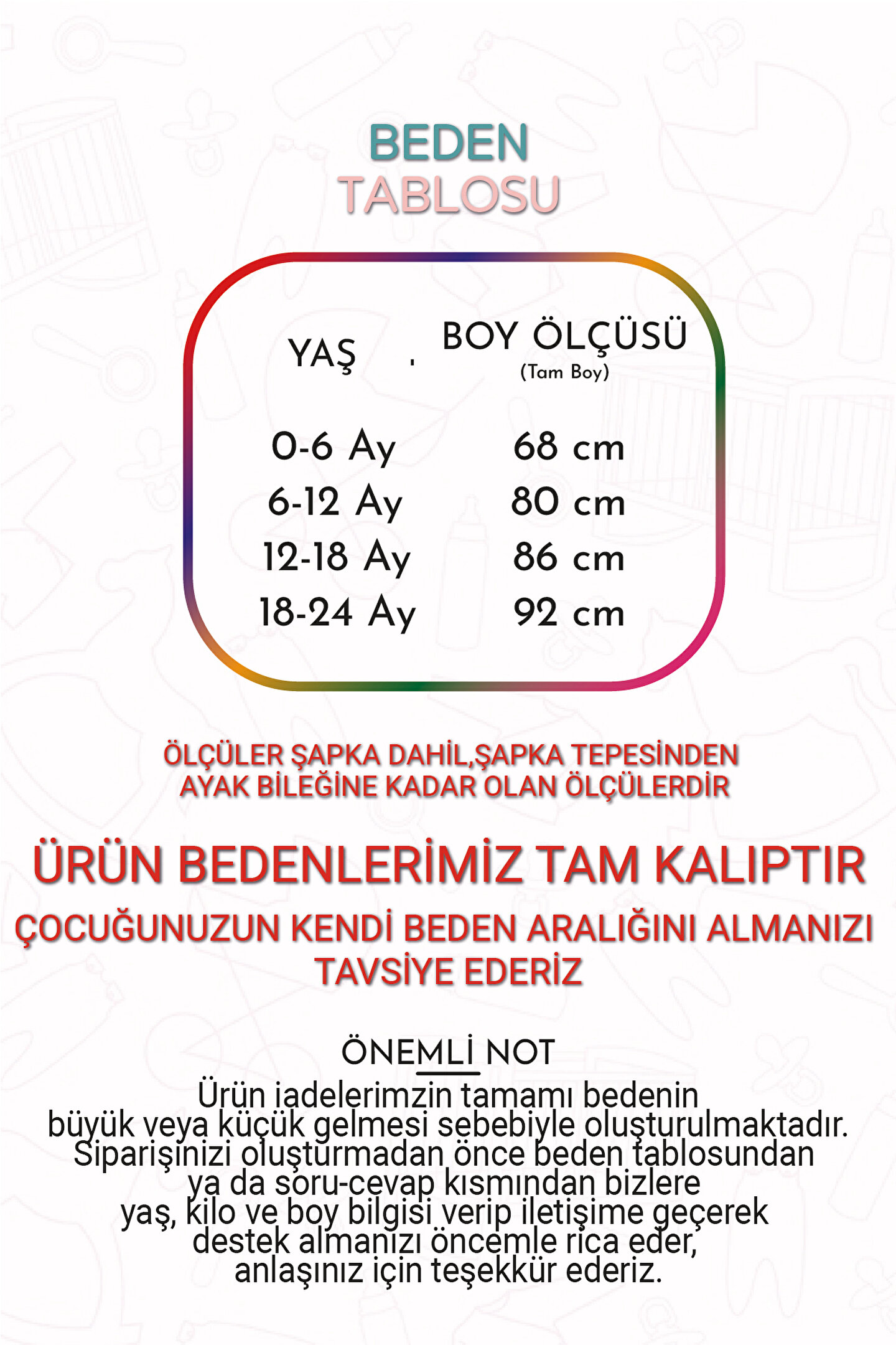 Welsoft Peluş Unisex FermuWelsoft Peluş Unisex Fermuarlı Kışlık Bebek Uyku Tulumu Bebek Tulumu Çocuk Tulumu Çocuk Kostümü -Tulumumuz bebeğinizin hassas cildine zarar vermeyecek ve kanserojen madde içermeyen welsoft kumaştan üretilmiştir. ; -Yerli üretimdir. ; -Tulum yumuşak ve peluşlu bir dokuya sahiptir. ; -Içerisinde astar yoktur ve patikli değildir. ; -Içerde ve dışarda yatarken kullanıma uygundur. ; -Lütfen görseldeki ölçülere dikkat ederek sipariş veriniz. ; -30 derecede yıkayınız ve ağartıcı kullanmayınız.;