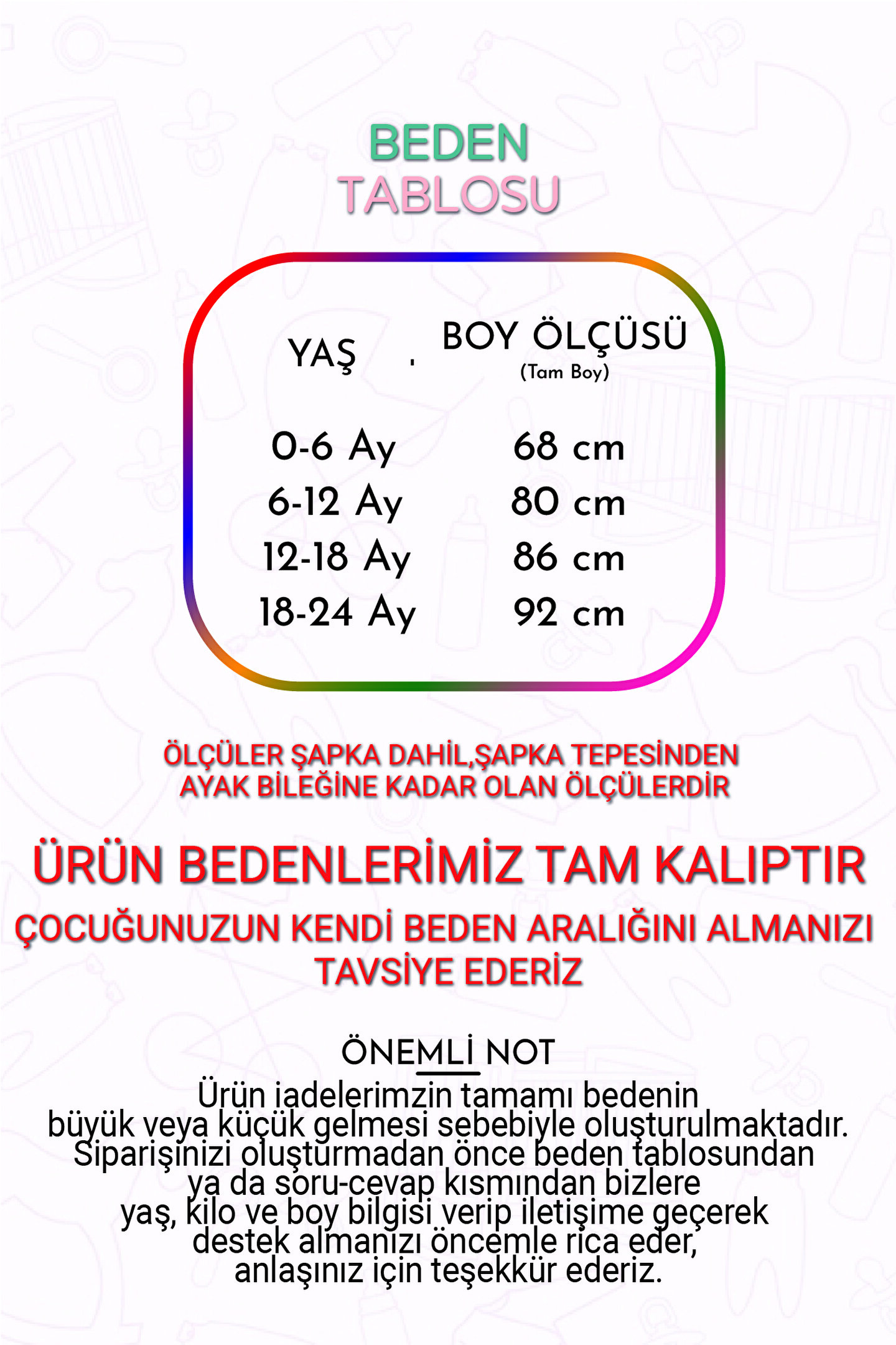 Welsoft Peluş Unisex FermuWelsoft Peluş Unisex Fermuarlı Kışlık Bebek Uyku Tulumu Bebek Tulumu Çocuk Tulumu Çocuk Kostümü -Tulumumuz bebeğinizin hassas cildine zarar vermeyecek ve kanserojen madde içermeyen welsoft kumaştan üretilmiştir.; -Yerli üretimdir.; -Tulum yumuşak ve peluşlu bir dokuya sahiptir.; -Içerisinde astar yoktur ve patikli değildir.; -Içerde ve dışarda yatarken kullanıma uygundur.; -Lütfen görseldeki ölçülere dikkat ederek sipariş veriniz.; -30 derecede yıkayınız ve ağartıcı kullanmayınız.