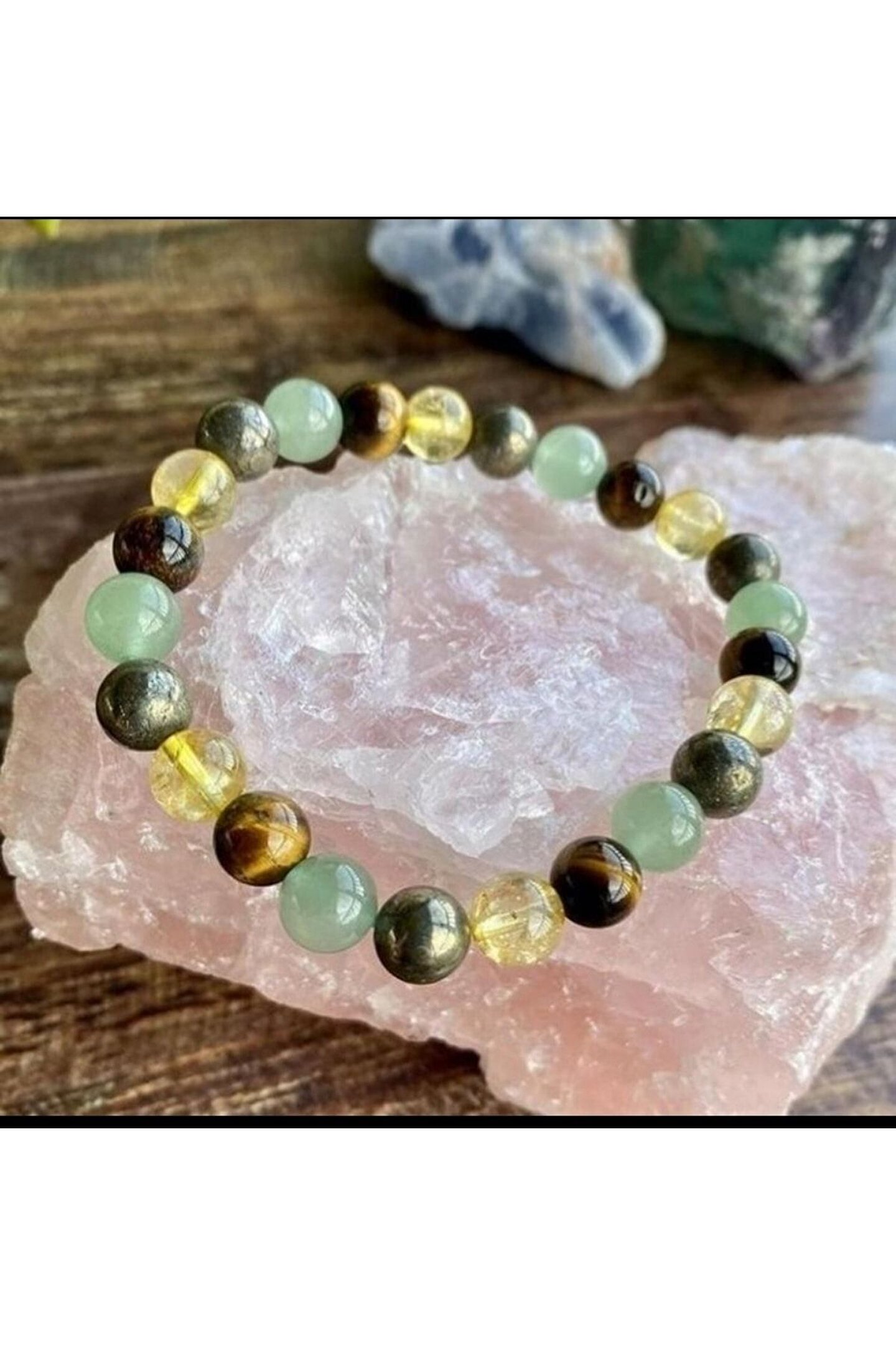 Doğal taş kullanımı, her bir bilekliğin benzersiz ve otantik bir görünüm kazanmasını sağlar; Aventurin sitrin pirit doğaltaş bileklik, zarif tasarımıyla dikkat çeker ve şıklığınızı tamamlar; Sertifikalı doğaltaş kullanımı, ürünün kalitesini ve orijinalliğini garanti eder; Bu bileklik, hem günlük kullanım hem de özel günler için ideal bir aksesuar seçeneği sunar;