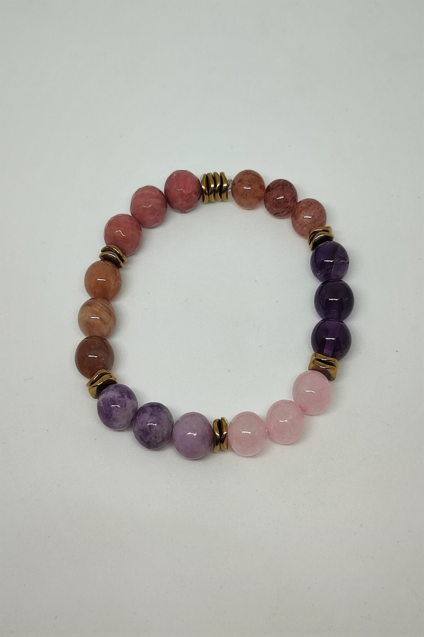 - Doğal taş bileklik, şıklığı ve doğallığı bir arada sunar; - Sertifikalı güneş taşı, lepidolit, ametist, rodonit, pembe kuvars ve çilek kuvars gibi değerli taşlarla tasarlanmıştır; - Her bir bileklik, benzersiz ve özgün bir görünüm kazandırır; - Bu bileklikler, hem günlük kullanım hem de özel günler için ideal bir aksesuar seçeneği oluşturur;