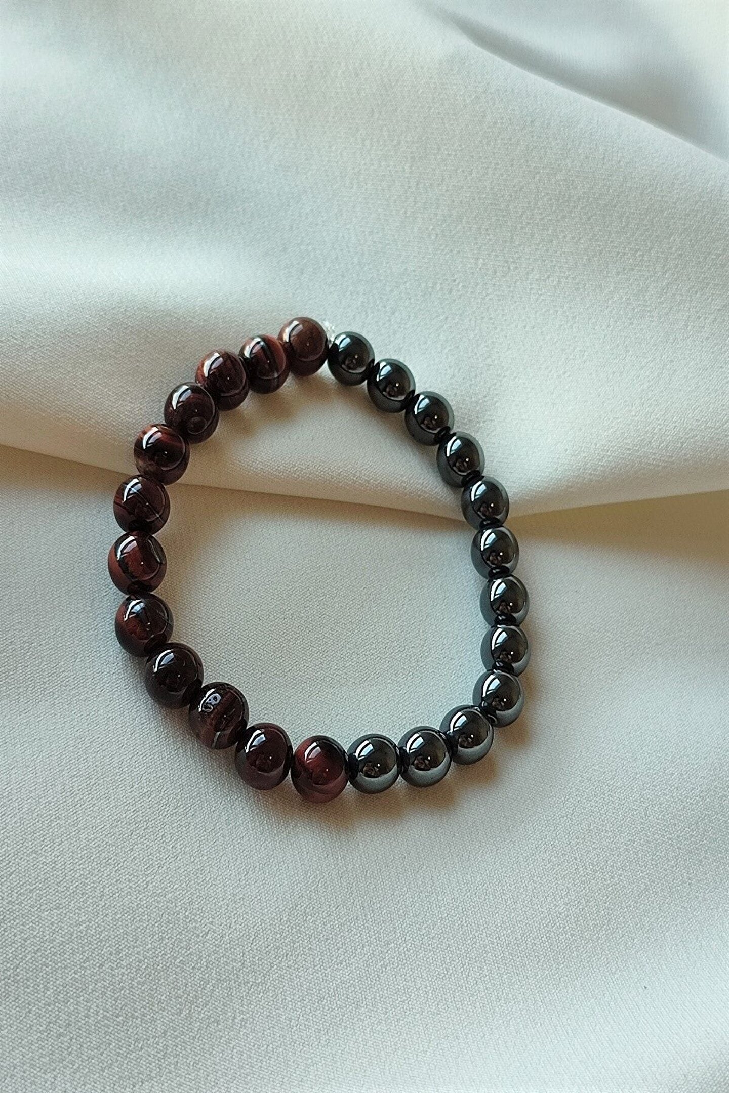 Doğal taş kullanımı, her bir bilekliğin benzersiz ve otantik bir görünüm kazanmasını sağlar; Sertifikalı demir kaplangözü, hem şıklığı hem de dayanıklılığı bir arada sunar; Hematit taşı, bilekliğe enerji ve pozitif titreşimler katarak kullanıcıya huzur verir; El yapımı olması, her bir bilekliğin özgün ve kişisel bir dokunuşla tamamlanmasını sağlar;