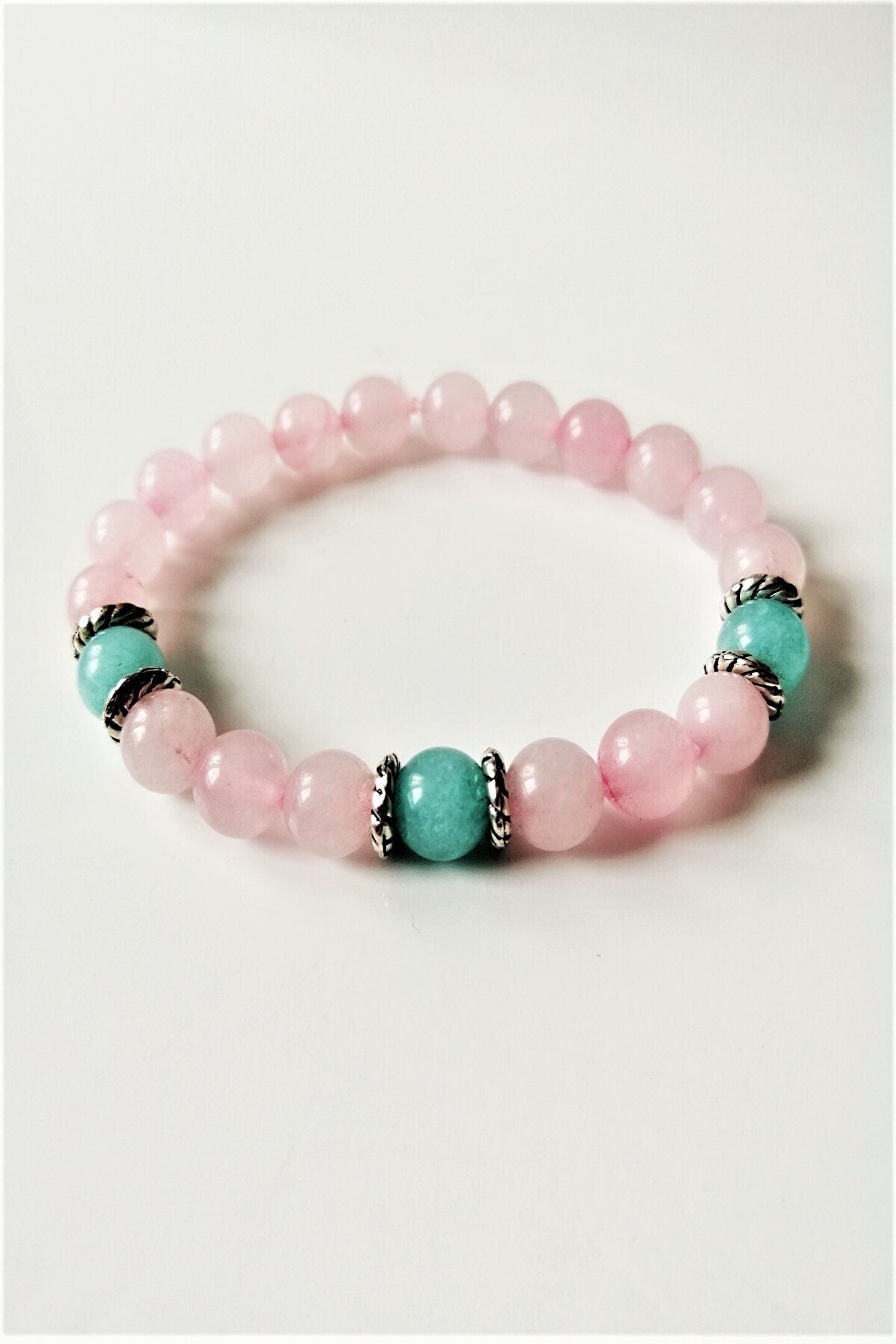 Doğal taş kullanımı sayesinde her bileklik benzersiz ve otantik bir görünüm sunar; Sertifikalı pembe kuvars ve mavi akik taşları, bilekliğe zarif bir parlaklık ve estetik bir dokunuş katar; Doğal taşların şık tasarımıyla günlük kullanım için idealdir; hem rahatlığı hem de stil sahibi görünümü bir arada sunar; Bileklik, hem kişisel kullanım için mükemmel bir aksesuar hem de hediye olarak tercih edilebilecek zarif bir seçenektir;