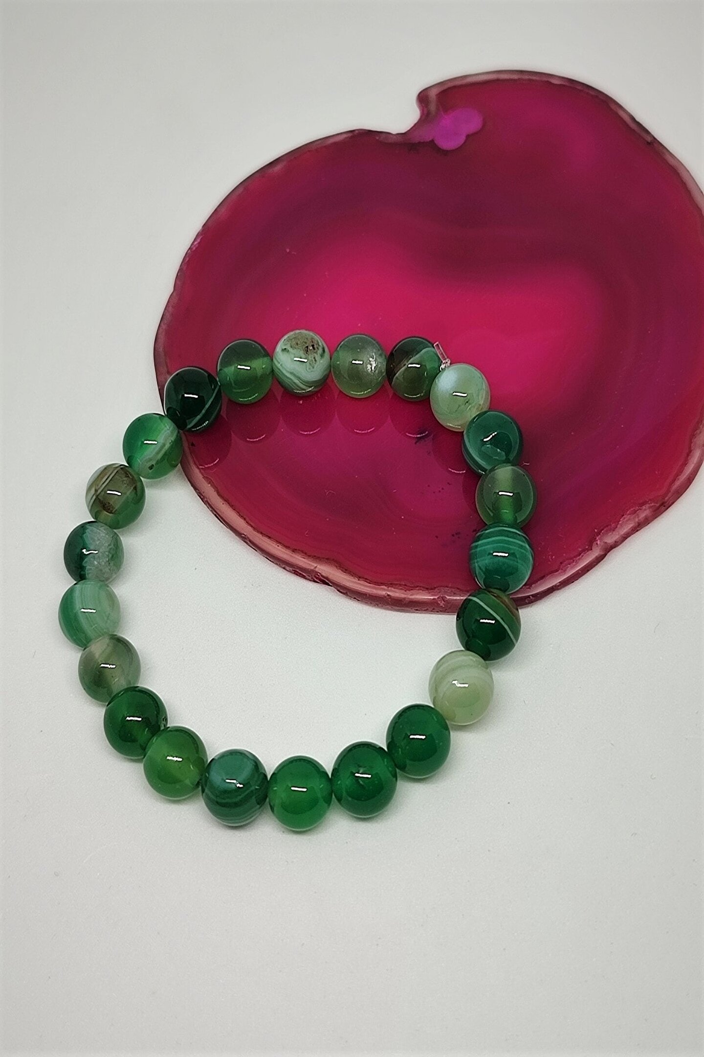 - Doğal akik taşı kullanılarak üretilmiş, şıklığı ve zarafeti bir arada sunan bileklik; - El işçiliğiyle hazırlanan bu bileklik, hem günlük kullanım hem de özel günler için ideal bir aksesuar seçeneği;