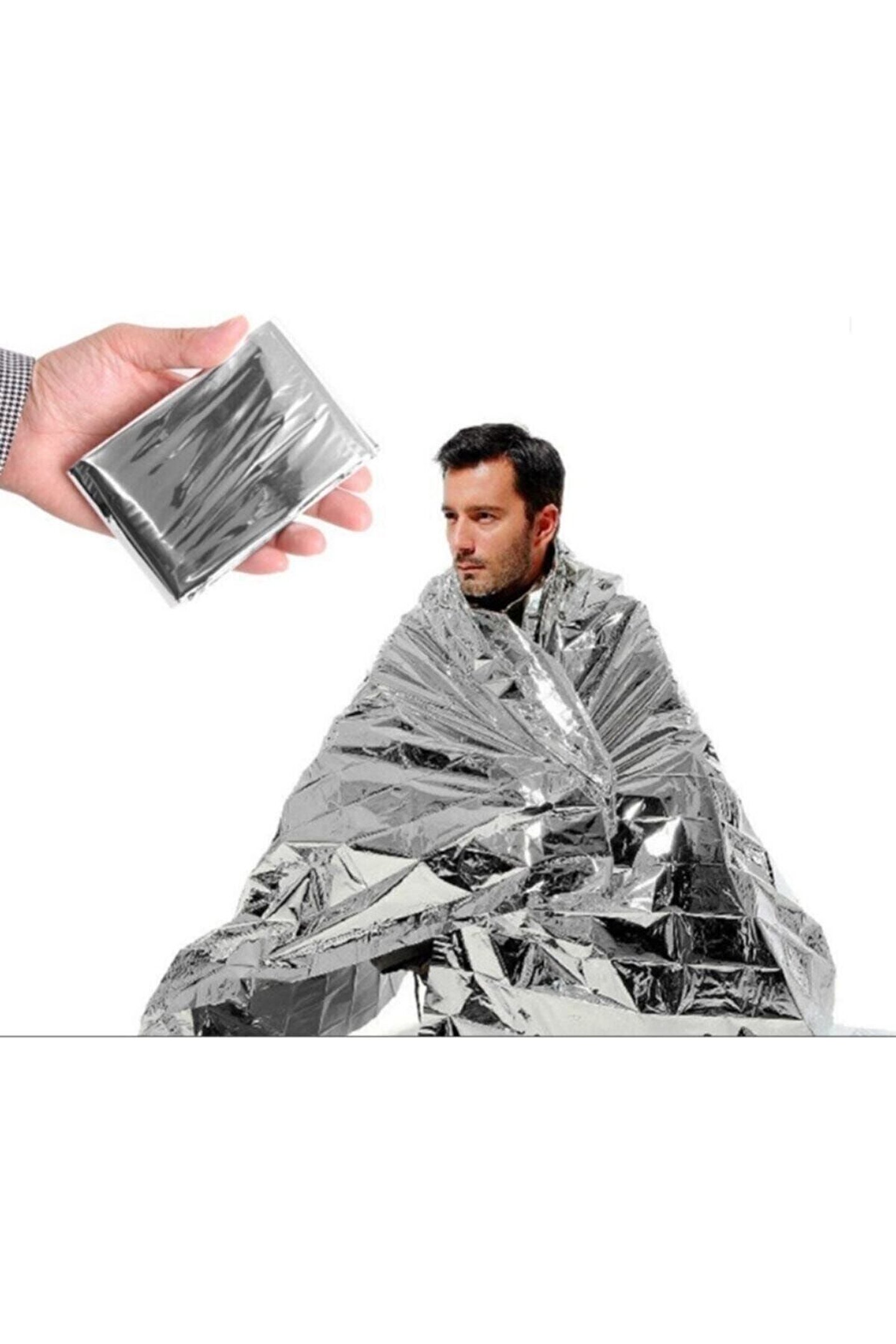 Acil Durum Ilk Yardım Battaniyesi Deprem Survival Termal Battaniye ; 160cm x 210 cm SARI-GÜMÜŞ RENK ; Termal battaniye nedir, ne için kullanılır? ; Acil durum ve afetlerde sıkça görülen, folyoyu andıran termal battaniyenin ilk yardım çantalarının içerisinde bulunması uzmanlar tarafından öneriliyor. ; Yaklaşık 70 yıldır kullanımda olan termal battaniye vücut ısısının korunmasını sağlıyor. Mylar adı verilen bir maddeden üretilen termal battaniye, hacmi düşük ve ısıyı koruma özelliği ile dikkat çekiyor. ; Son dönemde özellikle izmir depremindeki zarar gören mağdurlarda görülen battaniye merak konusu oldu. ; Termal battaniye nedir? ; 1950'lerde dupont tarafından icat edilmiş, daha sonra nasa tarafından uzay görevlerinde kullanılmaya termal battaniye, içerdiği metal nedeni ile parlak bir görünüme sahiptir. Termal battaniye, sarılı olduğu kişiyi ısıtma görevi değil mevcut ısıyı muhafaza ederek yalıtım sağlama görevini gerçekleştiriyor. Vücuda sarıldığı andan itibaren dışarıdaki havanın içeri geçmesini önleyen battaniye aynı zamanda terleme etkisini de ortadan kaldırarak buharlaşmayla oluşabilecek ısı kayıplarını da en alt düzeye indirir. ; Termal battaniye iki yönlüdür ; Soğuk ve sıcağın yanı sıra su ve rüzgarı da geçirmeyen termal battaniye iki farklı yüzeyden oluşuyor. ; Bir yönü güneş koruması sayesinde serin tutmayı başarırken, diğer yönü ise ısıyı hapsederek vücudun sıcak kalmasını sağlar, böylece hipotermiyi engeller. ;