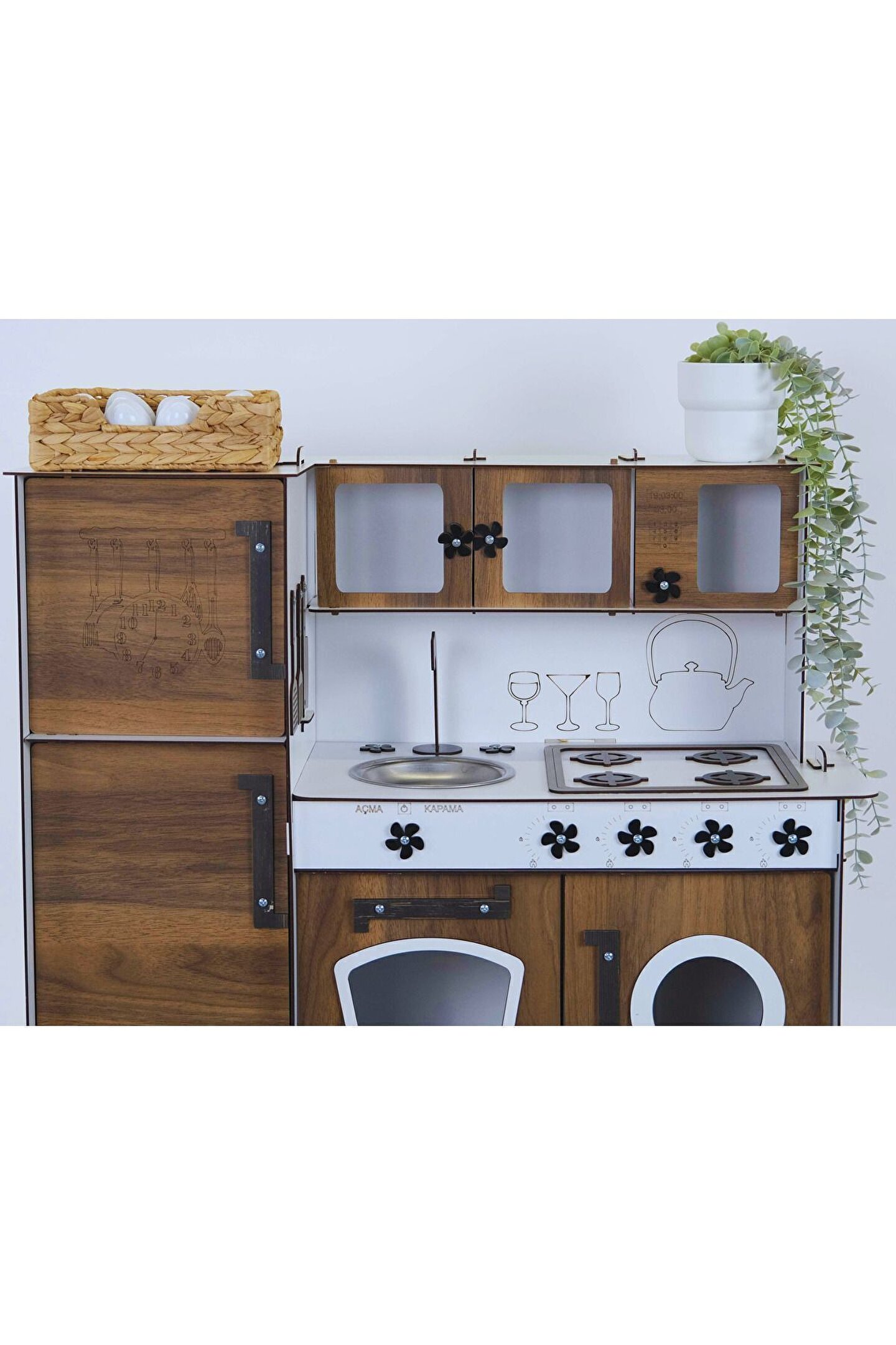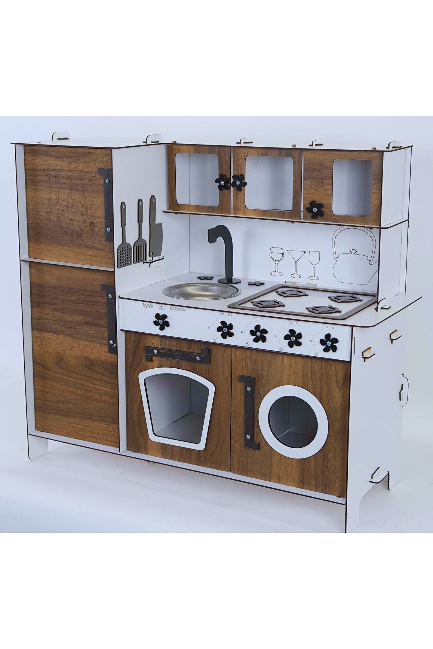 Yükseklik 70 cm. ; Genişlik 80 cm. ; Malzemesi 1. ; Sınıf 3 mm ÇİFT YÜZ MDF'dir. ; Doğum günü hediyesi olarak tercih edilen ürünler arasındadır. ; Evcilik oyuncakları , oyuncak mutfak setleri, eğitici oyuncaklar , kız çocuk oyuncakları alanında tercih edildiği gibi erkek çocuklar içinde oldukça talep gören bir oyuncaktır. ; Montessori etkinlikleri ne uygun olarak tasarlanmıştır, çocukların hayal gücünü ve motor becerilerini geliştirir. ; Bu ürün 3mm'dir. ; 6mm ürün için "Ahşap Oyuncak Mutfak 6mm" olarak inceleyebilirsiniz, inceymiş açıklaması ile iade kabul edilmemektedir, 3 mm olarak binlerce kişi memnun kullanmaktadır. ; Paket içerisinde kurulum kılavuzu vardır yine de kurulum esnasında sorularınız olursa kılavuzun arkasındaki numaradan ulaşabilirsiniz. ; Kargoda hasar görmemesi için özenle paketlenmektedir, olası bir hasar durumunda parçalar ücretsiz olarak kargo edilir. ; Boyalı olduğundan boya için ayrıca uğraşma gerektirmez sadece kurulum yaparak kullanıma başlayabilirsiniz. ; 9 renk alternatifi vardır tercih ettiğiniz renk üzerinden sipariş verebilirsiniz.;