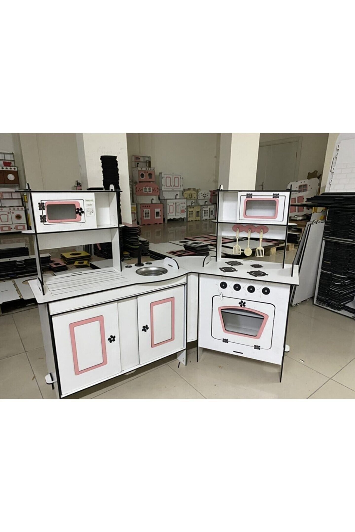 Bu Ahşap Oyuncak Mutfak L Modeli ile küçükçocuğunuzun mutfak yeteneklerini keşfetmesine izin verin. Bu ahşap mutfak,yaratıcı oyunlar için mükemmeldir ve her odada harika görünecek modern birtasarıma sahiptir. MDF malzemeden üretilen bu üründe fırın, lavabo, çamaşırmakinası, dolap ve tezgah ile yemek pişirmeyi eğlenceli ve gerçekçi halegetirmek için bulunur. Canlı renklerin çocuğunuzun dikkatini çekeceğinden veçocukluk sevincinin kalıcı anılarını yaratacağından emin olabilirsiniz. · Genişlik130cm, Yükseklik 100cm, Derinlik 40cm'dir. ; Malzemesi 6.4mm MDF'dir.; Keskinkenarları olmadığı ve toksik olmayan malzemelerden yapıldığı için çocuklar içingüvenlidir. ; Gerçek birpişirme köşesi deneyimi sunmak için L model tasarıma sahip ideal bir ahşap oyuncakmutfak. ; Mükemmelgörünüm için beyaz ve pembe boyalı yüksek kaliteli MDF ahşap konstrüksiyon. ; Fırın, lavabo,ocak gibi gerekli tüm aksesuarlarla birlikte gelir. ; Isıyıyükseltmek ve gerçekçi hissetmesi için ocak üzerinde dört hareketli düğme. ; Gıda maddelerive diğer şeyler için geniş saklama rafları. ; Lavabo,bulaşık yıkamayı taklit etmek için mutfağın en favorisi. ; Dolaplar vekancalar için asılı raf. ; Kullanılmadığındamontajı ve sökülmesi kolaydır. ; Önerilen yaş:3 yaş üstü. ; Her durum içinmükemmel bir hediye. ;