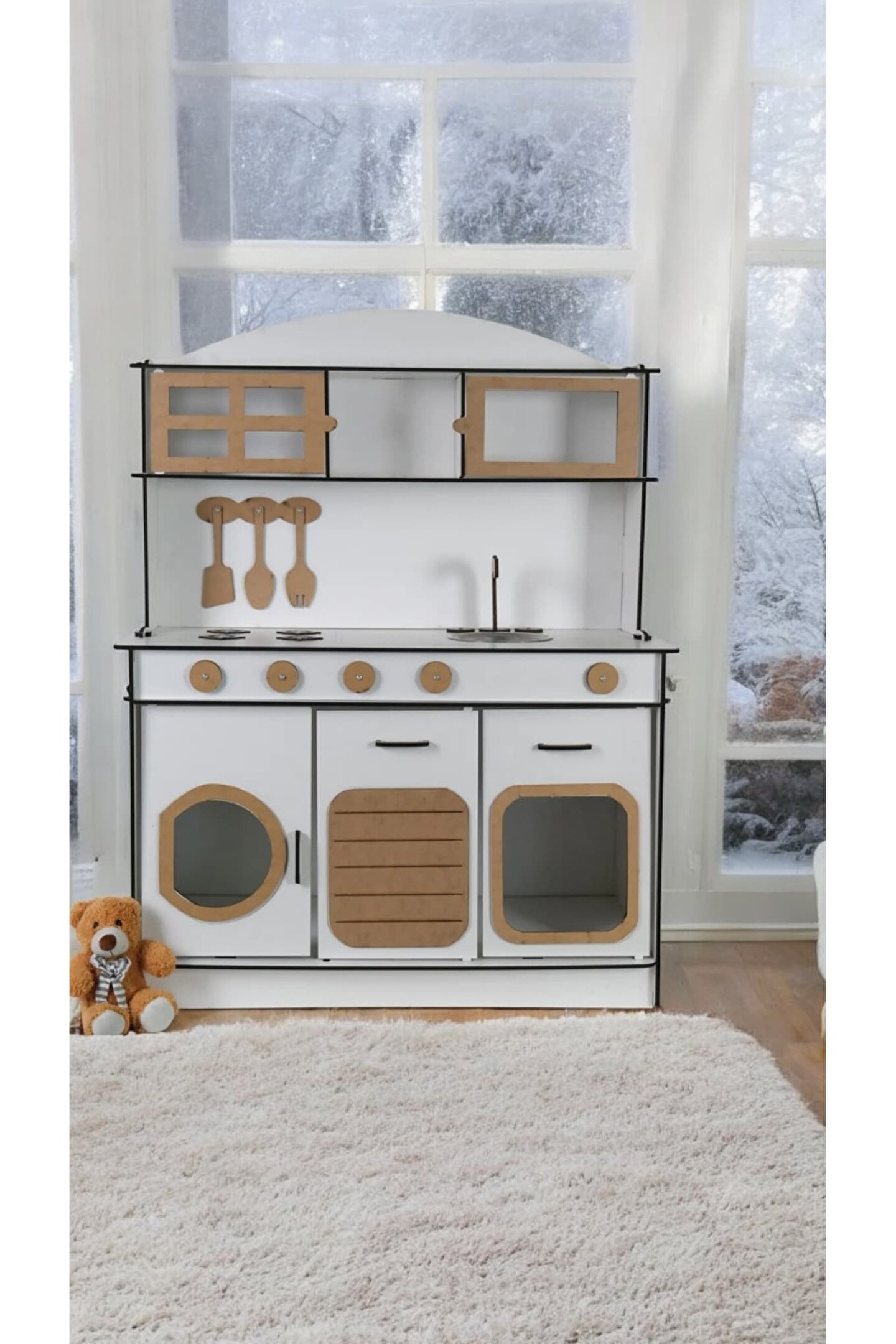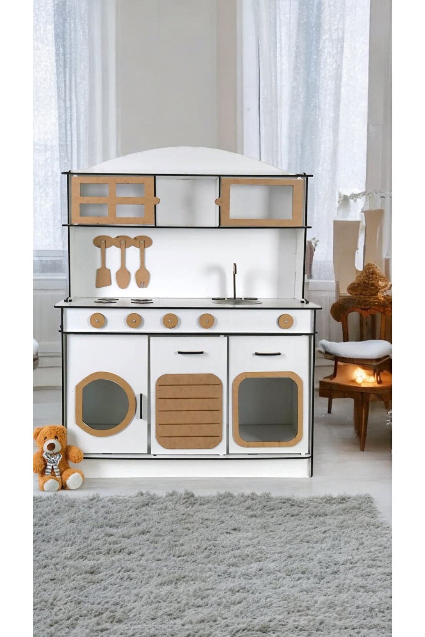 - Bu ahşap oyuncak mutfak, çocuğunuza yaratıcı ve interaktif bir oyun deneyimi sunmak için tasarlanmıştır. 6mm MDF malzemeden üretilmiş olup dayanıklı ve güvenlidir. Gerçek mutfak detaylarıyla çocukların hayal gücünü geliştirmesine ve eğlenerek öğrenmesine yardımcı olur.