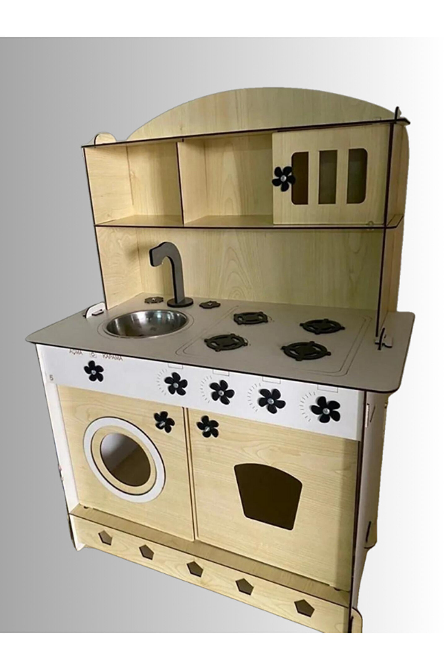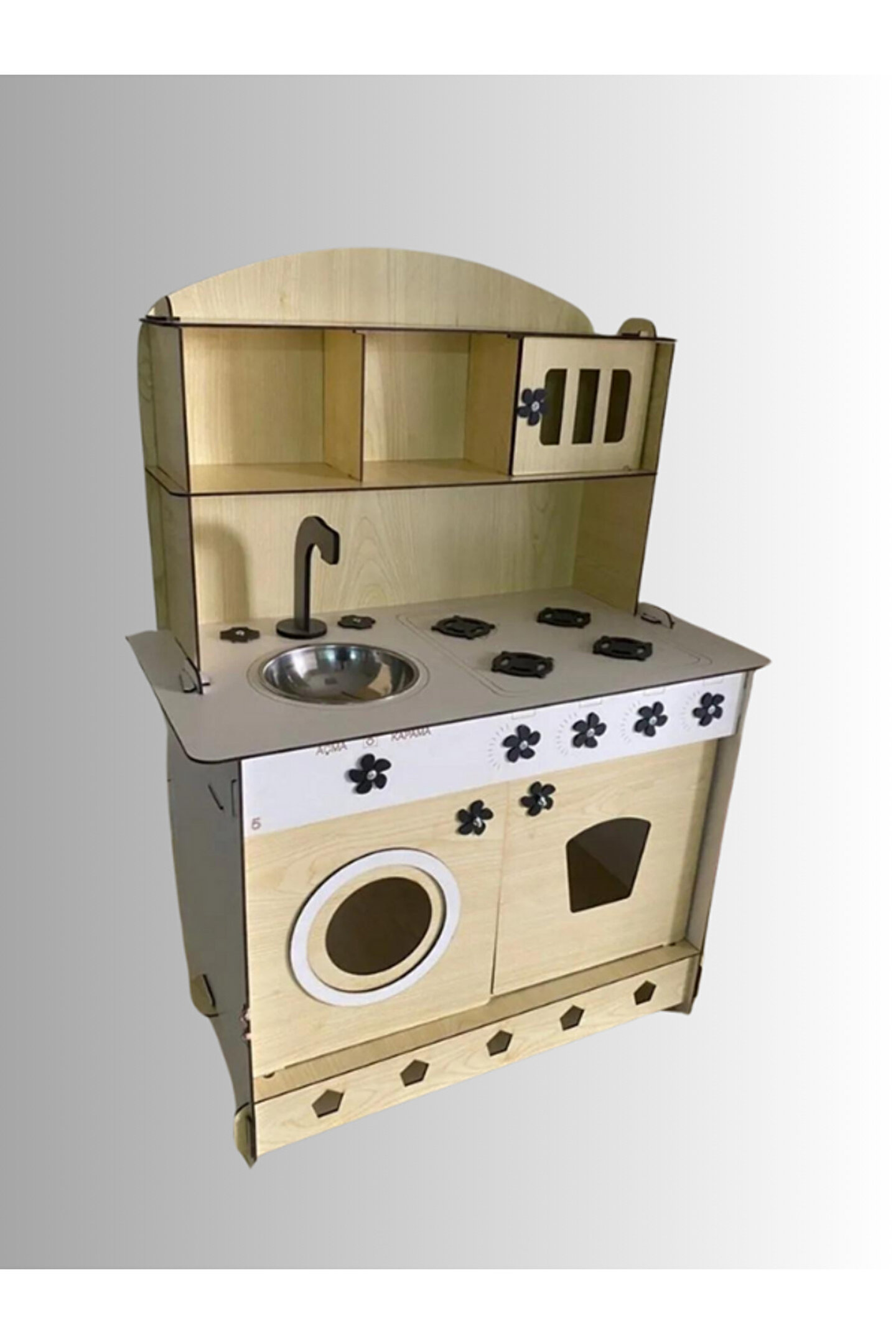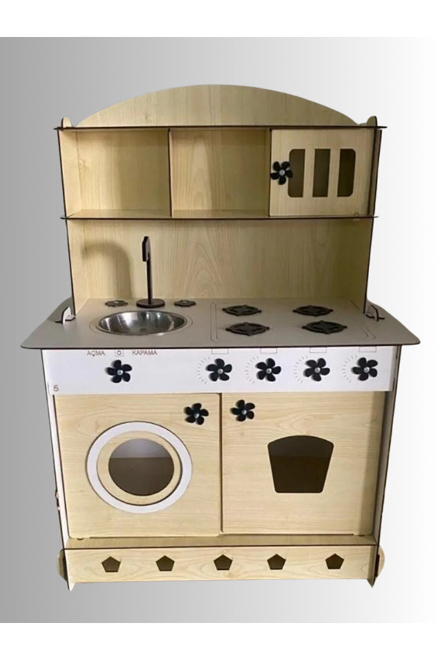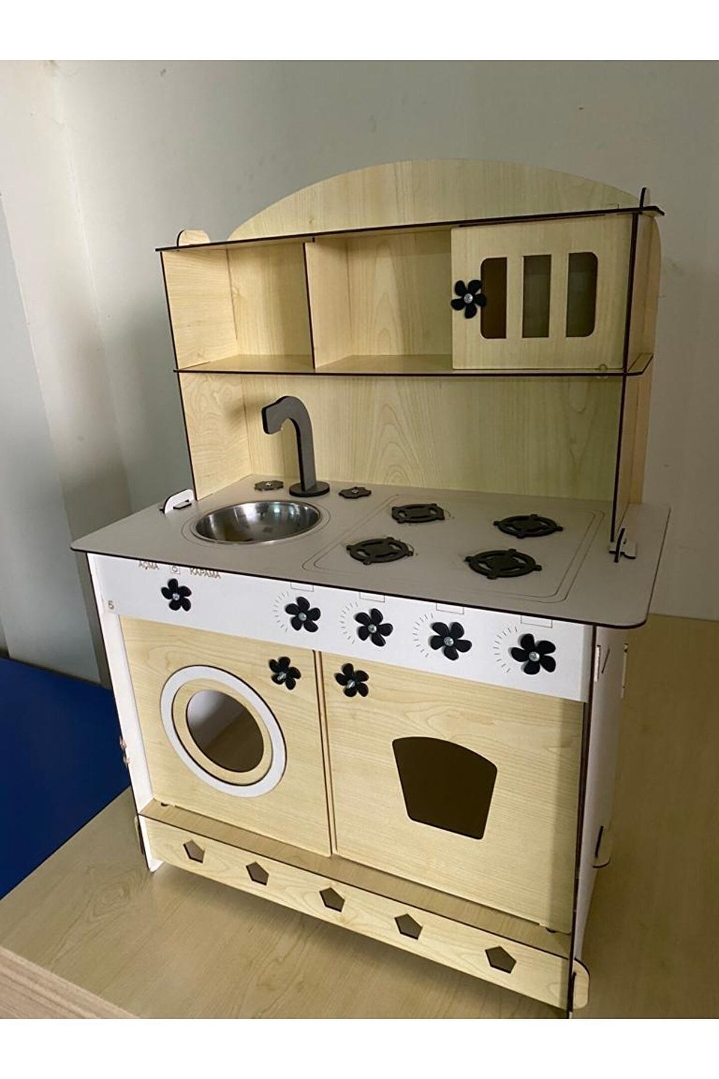 Ürün kendi imalatımız olup 3mm 1. sınıf MDF'den üretilmiştir. ; Genişlik 60cm, Yükseklik 84cm, Derinlik 40cm'dir. ; Paket içerisinde kullanım kılavuzu vardır yine de kurulum esnasında sorularınız olursa kılavuzun arkasındaki numaradan ulaşabilirsiniz. ; Bu ürün 3mm'dir. 6mm ürün için "Ahşap Oyuncak Mutfak 6mm" olarak inceleyebilirsiniz. Her iki üründe aynı ölçü ve özelliklerdedir sadece kalınlık farklıdır çok inceymiş açıklaması ile iade kabul edilmemektedir, 3 mm olarak binlerce kişi memnun kullanmaktadır. ; Kargoda hasar görmemesi için özenle paketlenmektedir, olası bir hasar durumunda parçalar ücretsiz olarak kargo edilir. ; MDFLAM olduğundan ürün boyalı gönderilmektedir boya için ayrıca uğraşma gerektirmez sadece kurulum yaparak kullanıma başlayabilirsiniz. ; 12 renk alternatifi vardır tercih ettiğiniz renk üzerinden sipariş verebilirsiniz. ;