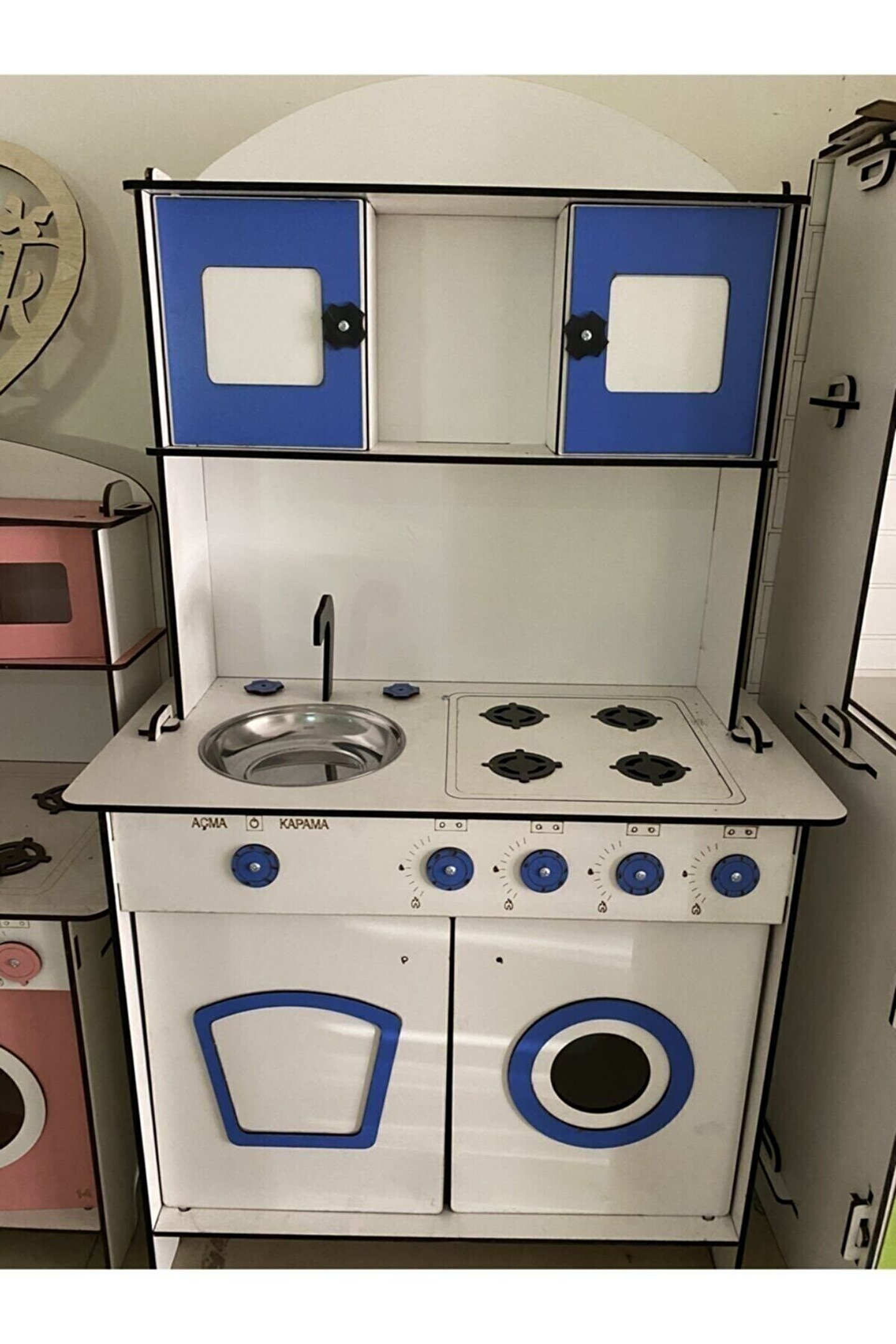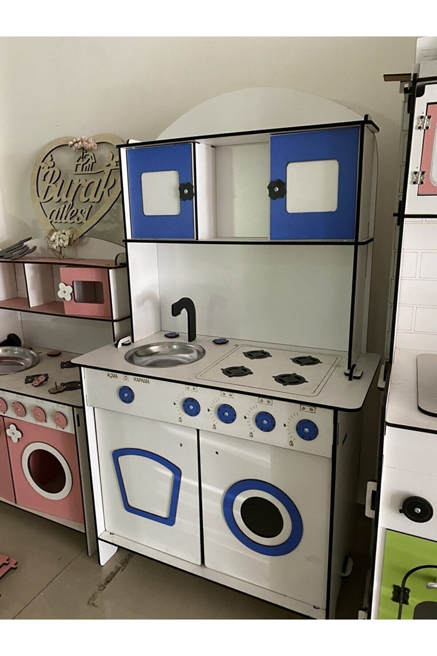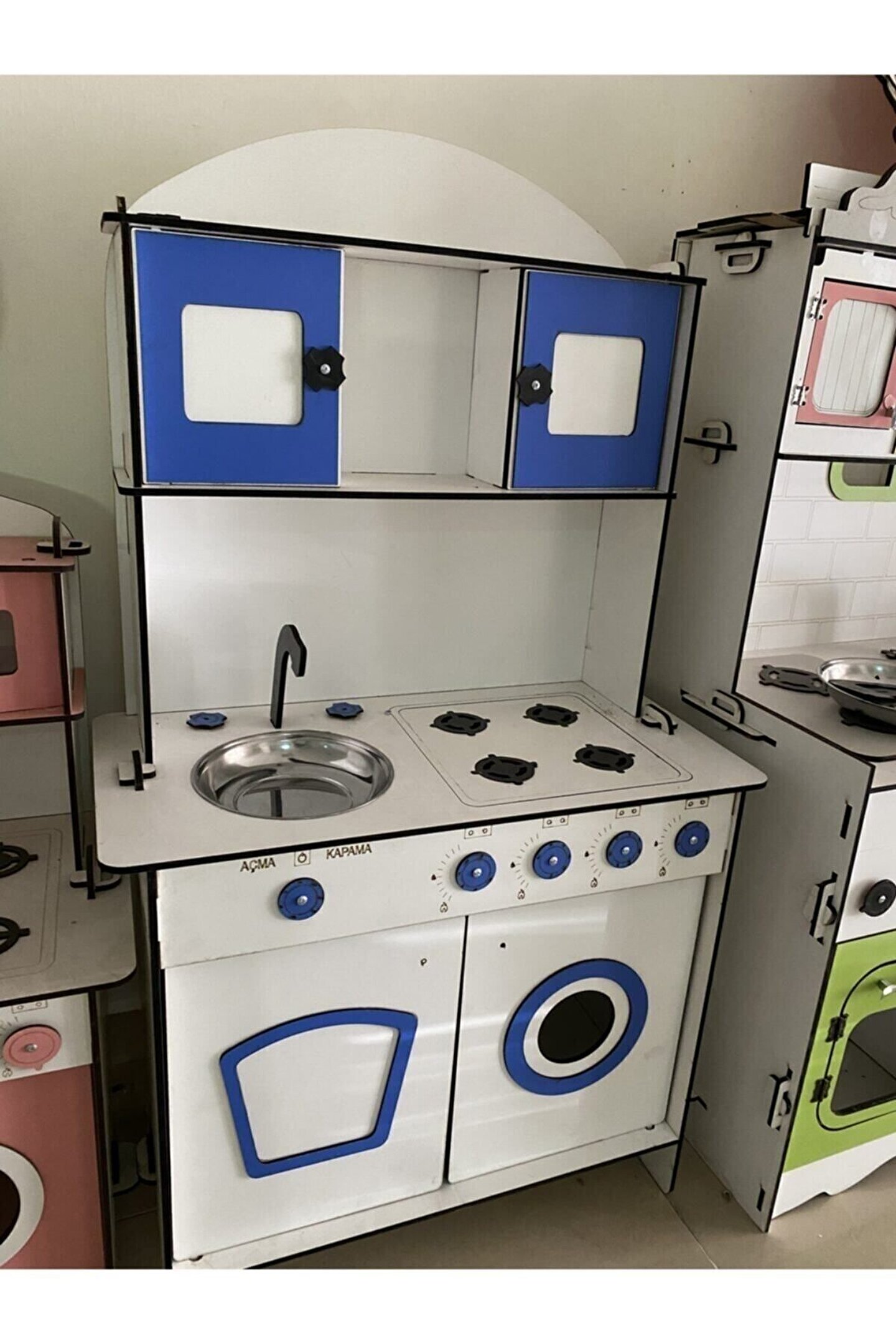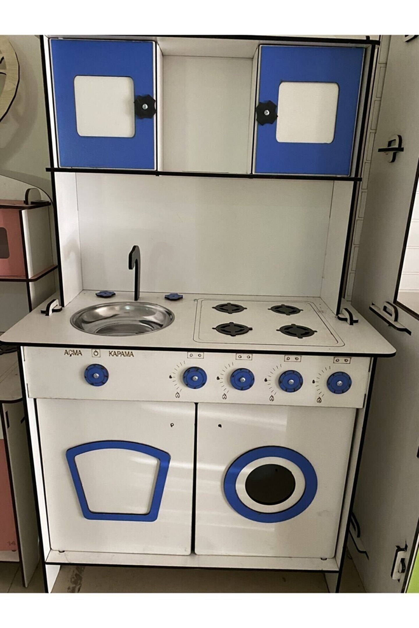 Ürün kendi imalatımız olup 6 mm MDF'den üretilmektedir. ; 106x60 ölçülerinde çocuğun ayakta rahatlıkla oynayabileceği boyuttadır ; Çocukların motor becerileri ve hayal güçleri gelişimini destekleyen harika tasarım gelişim oyuncağıdır ; Ürünümüzü sipariş verdikten sonra msj ile renk belirtebilirsiniz, renk belirtilmezse görseldeki ürünün aynısı gönderilir. ; Doğum günü hediyesi olarak tercih edilen ürünler arasındadır. Evcilik oyuncakları , oyuncak mutfak setleri, eğitici oyuncaklar , kız çocuk oyuncakları alanında tercih edildiği gibi erkek çocuklar içinde oldukça talep gören bir oyuncaktır. ; Kargoda veya kurulum sırasında oluşabilecek kazara kırılma veya deformasyon olması durumunda hasarlı parçalar firmamız tarafından ücretsiz bir şekilde gönderilmektedir, hasarlı parçanın görselini atmanız yeterlidir. ; Not; ürün özellikleri, ölçüler ve kullanılan malzemeler açıkça belirtilmiştir. Ürün iadesi kabul edilmemektedir buna göre sipariş verilmesini rica ederiz. ; İSTEĞE BAĞLI OLARAK KAPAKLARA 30 TL EK ÜCRET İLE AYNALI PLEKSİ TAKILABİLİR. ;