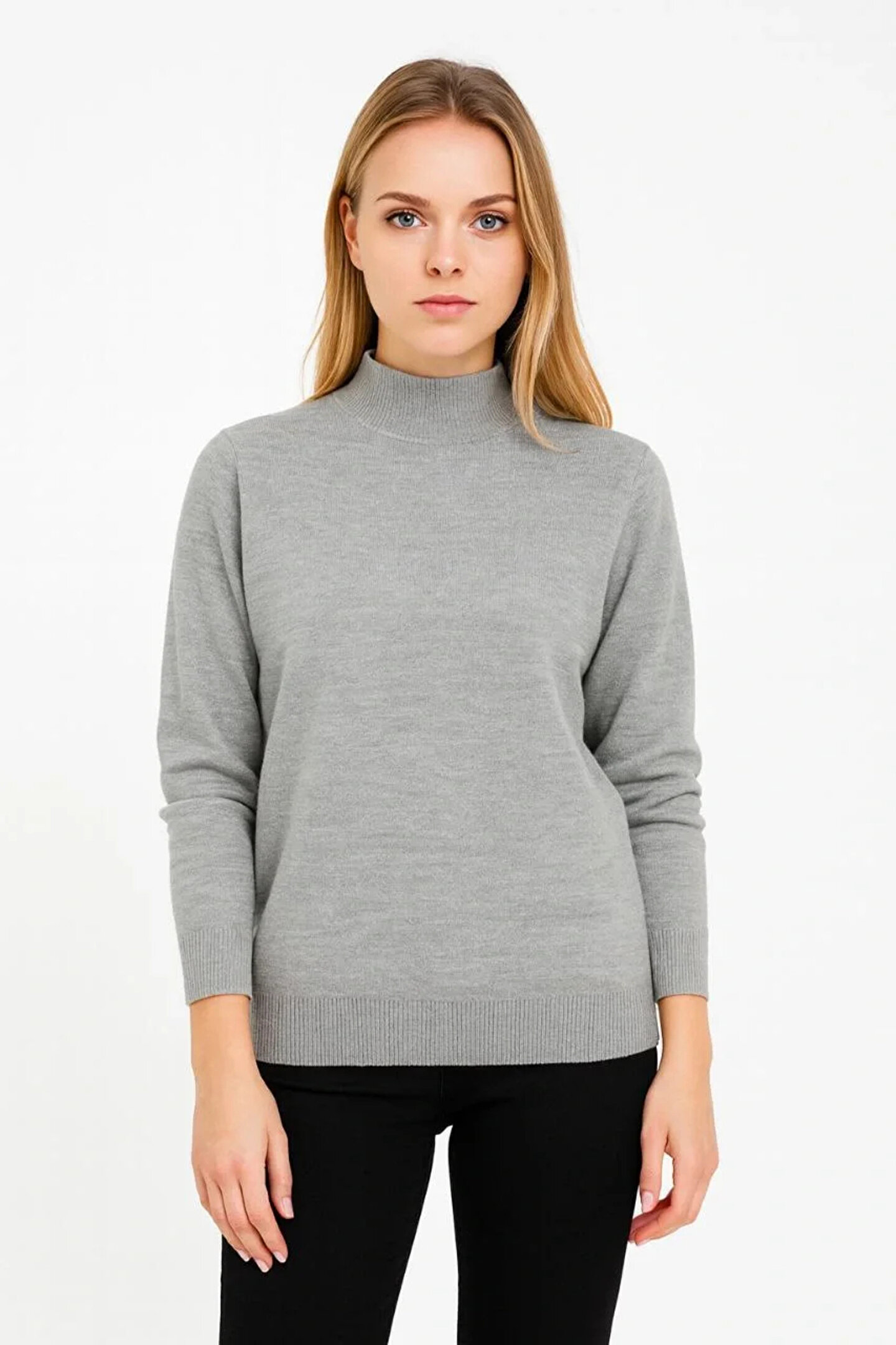 BALCI Kadın Yarım Boğaz Triko Kazak yumuşak dokulu Pamuklu ince Dokuma, uzun kollu Rahat Regular kalıp - G
