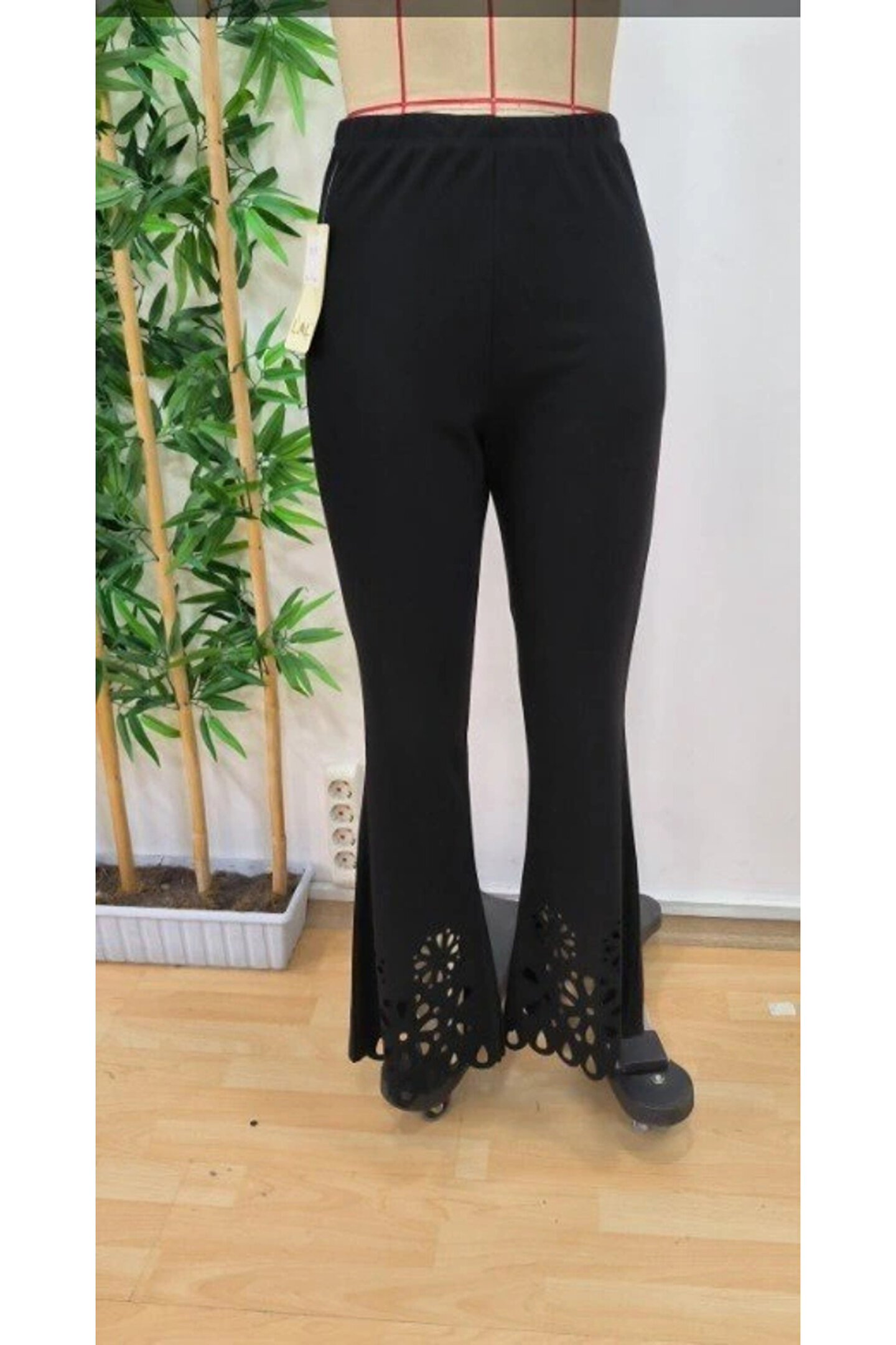 Kadın Yüksek Bel Paçaya Doğru Genişleyen Lazer çiçek Kesim Detaylı Ithal Krep Pantolon