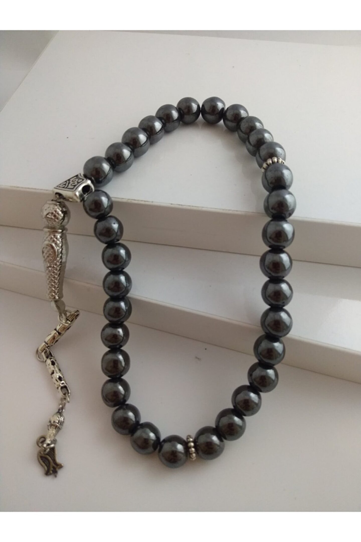HEMATİT TAŞI TESPİH / DOĞALTAŞ TESPİH HEMATİT TAŞI (Eklem Taşı): Oldukça versatil özelliklere sahip bu taşın faydalarının en başında stres azaltıcı özellik gelir. Sinir sistemini düzenleyici etkiye sahip olması sebebiyle kişinin ani ruh hali değişikliklerine uğraması, aşırı heyecan ve endişe gibi etmenleri yumuşatarak duygu-durum bozukluklarının yönetiminde yardımcı olur. Aynı zamanda negatif enerjiyi nötrleyerek bağışıklık sistemine de destekleyici etki yapar; dolayısıyla hastalanma riskini düşürür. **Bu eşsiz tasarım ve özelliklere sahip doğaltaş tespih neden sizin veya sevdiklerinizin olmasın.. **Ürünün Özellikleri: Tane boyutu 8 mm küre kesimdir. Bu orijinal doğaltaş tespih 33’lüdür. Metalik görünümlü özel tasarım olan bu tespih size hediye kutusu içinde gönderilecektir. İstediğiniz püskül modelini seçebilirsiniz sadece bize bildirmeniz yeterli. Görselde gördüğünüz ürün size gönderilecektir.