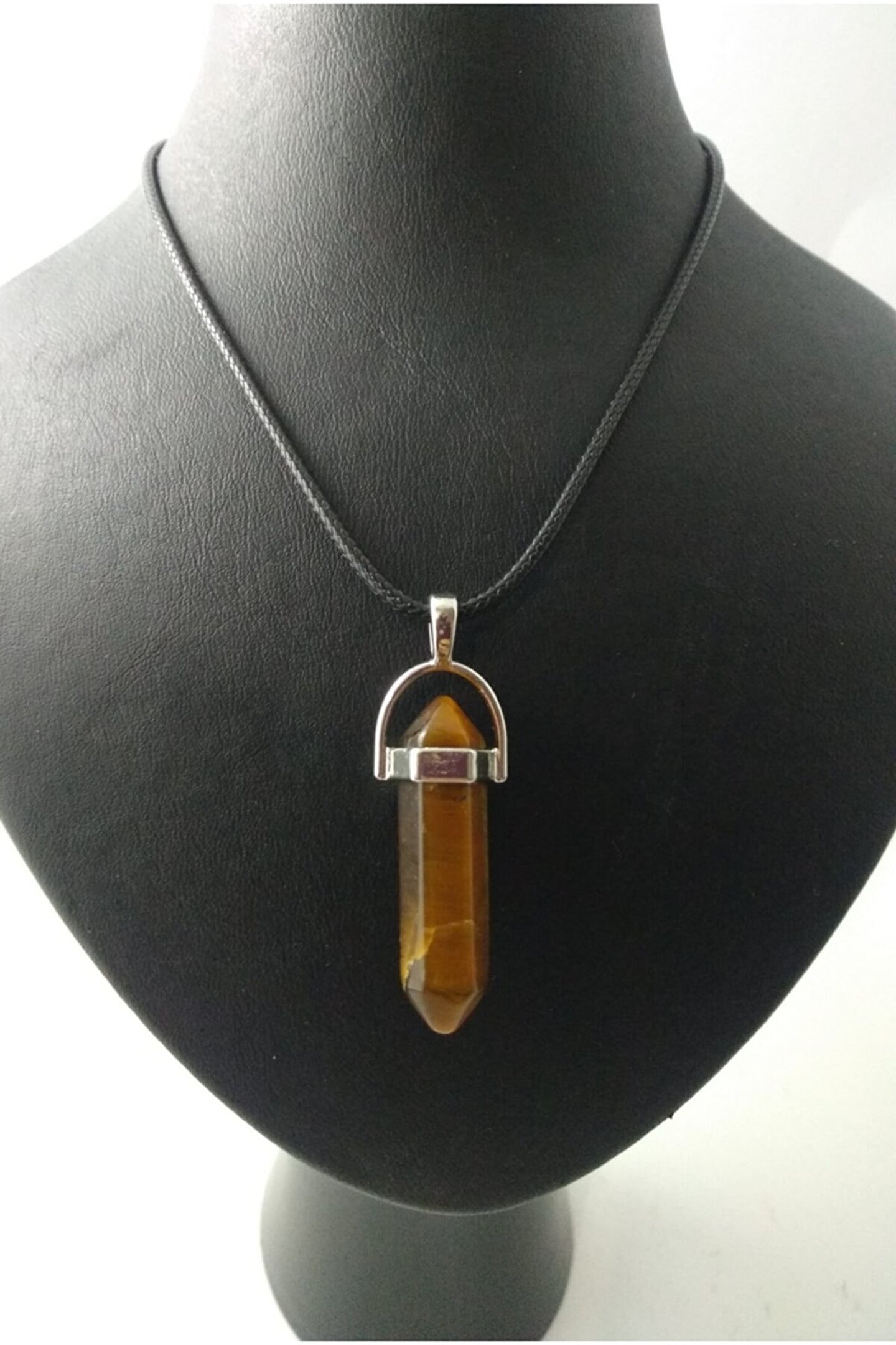 KAPLANGÖZÜ TAŞI KOLYE/ ÇİVİ ŞEKLİNDE DOĞALTAŞ KOLYE KAPLANGÖZÜ TAŞI (Kuvvet Taşı): Güneş enerjisini depolamasıyla bilinen bu güzel taş, topraklama temin ederek negatif enerjiyi nötrler ve ilhama konsantre olunmasına yardımcı olur. Güç ve cesaret taşı olan kaplan gözü; dayanıklılığı arttırır. Fiziksel bağımlılıkların (alkol, sigara, vs.) bırakılması sürecinde iradeyi destekler. Ürünün Özellikleri; Ürünlerimiz gerçek doğal taş olup çivi şekli ile tasarlanmıştır. Ürünümüz size hediye kutusu içinde gönderilecektir. Parfüm, Alkol v.b. gibi Maddeler ile Temasından Kaçınılmalıdır. Boyutu yaklaşık 3,5 cm'dir Suni Deri ip uzunluğu: 43 cm. Paket İçeriği: 1 adet