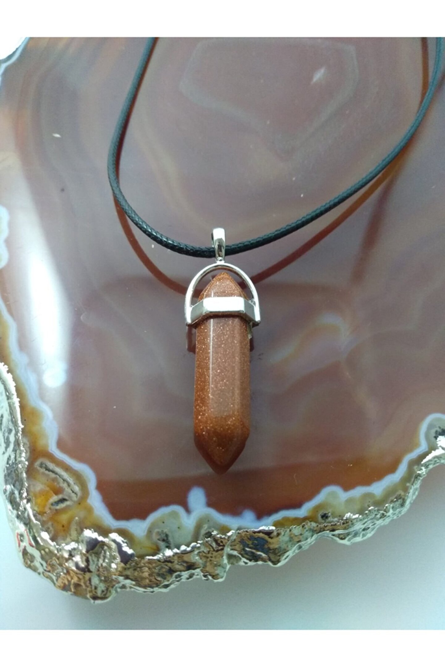 YILDIZ TAŞI KOLYE/ ÇİVİ ŞEKLİNDE DOĞALTAŞ KOLYE YILDIZ TAŞI(Aşk ve Neşe Taşı): Yıldız taşının faydalarından en bilineni kişinin açık yürekliliğini sembolize eder.Hayal taşı olarak da bilinir. Enerji gücü çok yüksek bir taştır. Sert görünümlü insanların görünüşleri ve duygularında yumuşama sağladığı bilinmektedir. Kişiye neşe, mutluluk, huzur ve yaşama sevinci verdiğine inanılır. Ürünün Özellikleri; Ürünlerimiz gerçek doğal taş olup çivi şekli ile tasarlanmıştır. Ürünümüz size hediye kutusu içinde gönderilecektir. Parfüm, Alkol v.b. gibi Maddeler ile Temasından Kaçınılmalıdır. Boyutu yaklaşık 3,5 cm'dir Suni Deri ip uzunluğu: 43 cm. Paket İçeriği: 1 adet