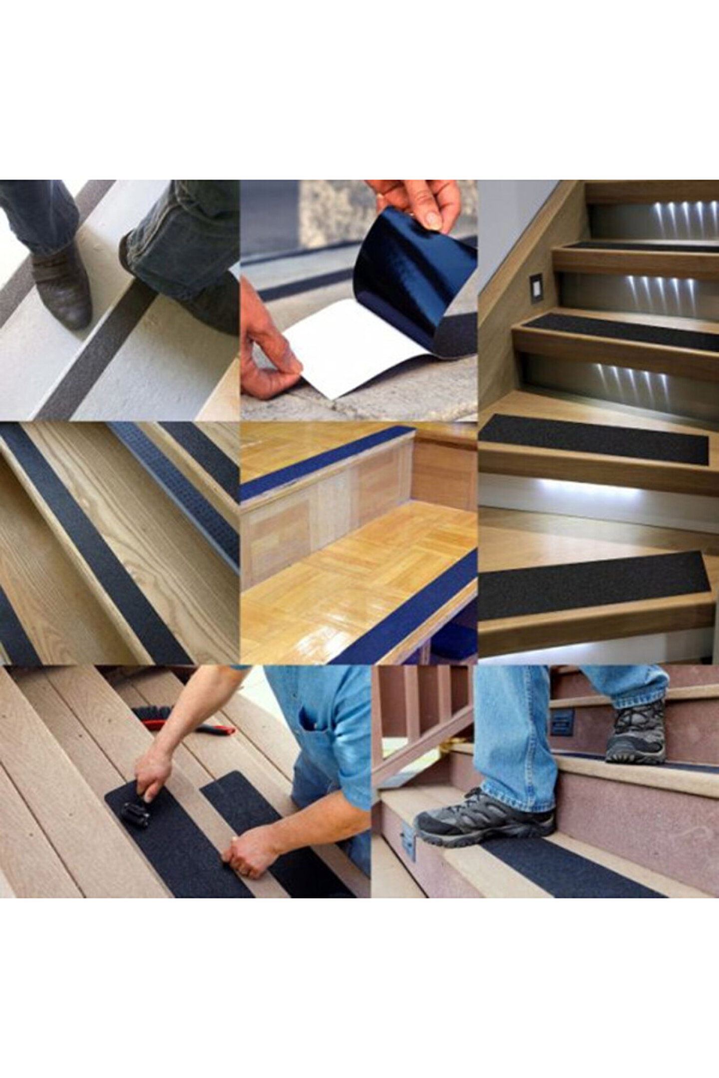 -5 metre uzunluğunda, 2,5 cm genişliğinde kaymaz bant, merdivenlerde güvenliği artırır ve kayma riskini minimize eder.; - Arkası yapışkanlı özelliği sayesinde kolayca uygulanabilir ve güçlü bir yapışma sağlar.; - Siyah renk seçeneği ile estetik bir görünüm sunarken, merdivenlerinize şık bir dokunuş katar.; - 1. kalite malzemeden üretilmiş olup, uzun ömürlü kullanım vaat eder.