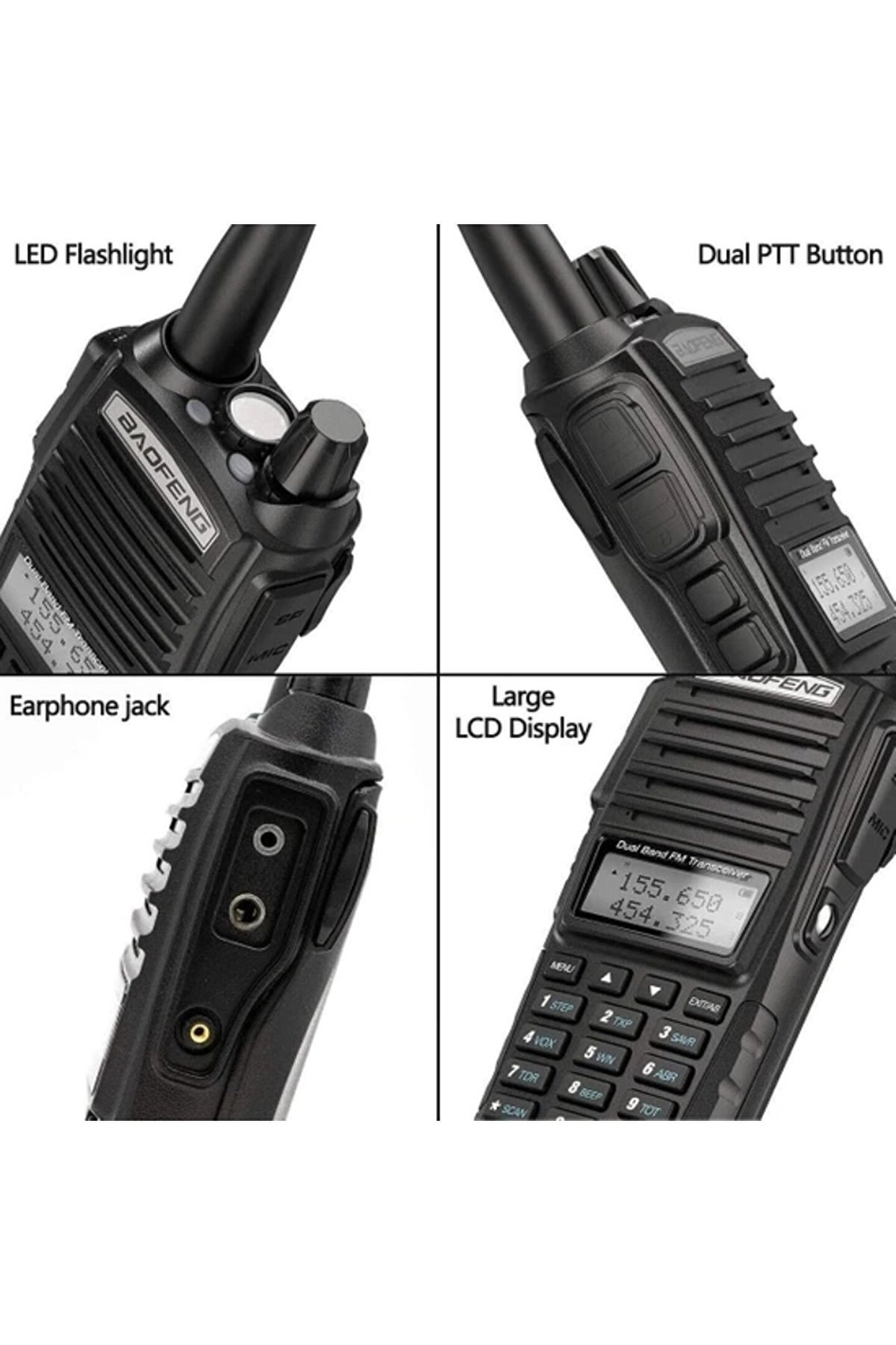 2 yıl ithalatçı garantisi ile güvenli kullanım sunar, olası teknik sorunlarda endişe etmenize gerek kalmaz; 10 km mesafeye kadar etkili iletişim imkanı sağlar, geniş alanlarda bile kesintisiz iletişim kurmanızı mümkün kılar; UV82 modeli, VHF ve UHF frekansları arasında geçiş yapabilme özelliği ile farklı frekanslarda daha iyi sinyal kalitesi sunar; İki adet telsiz alıcı; verici seti, birden fazla kullanıcı için esneklik sağlar ve grup halinde iletişim kurmanızı kolaylaştırır;