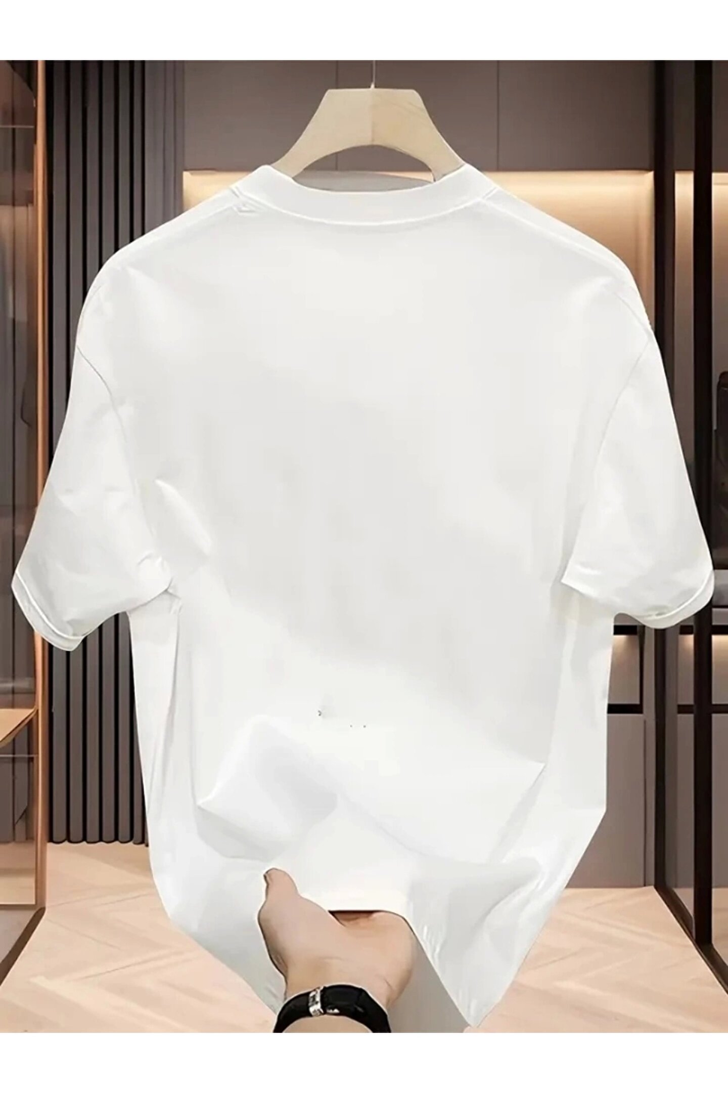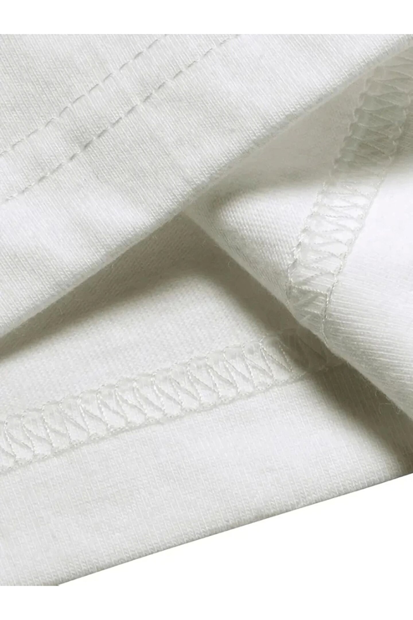 Baskılı Oversize Bisiklet Yaka T-shirt - Beyaz