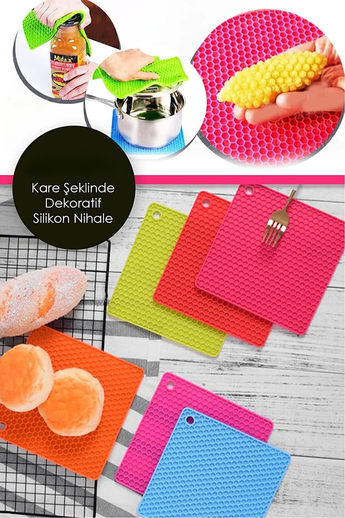 Kalburabastı Kalıbı Silikon Petek Desenli Kare Şekillendirici Servislerinizde, mutfakta, tencere ve tava altlarında kullanabileceğiniz Kare Tasarımlı Kare Desenli Sililkon Nihale Asorti Silikon ham maddesi gereği kum olduğu için yanmaz yapışmaz ve çok kolay temizlenebilir özelliğe sahiptir. ; Su ile ıslatılmış bir bezle veya ağartıcı maddeler içermeyen bir deterjan ile silinebilir. ; Temiz bir bez ile kurulanması gerekmektedir. ; Ürün Ölçüleri: 17 cm x 17 cm Stoklarımızda bulunan renklerden karışık olarak gönderilecektir.;