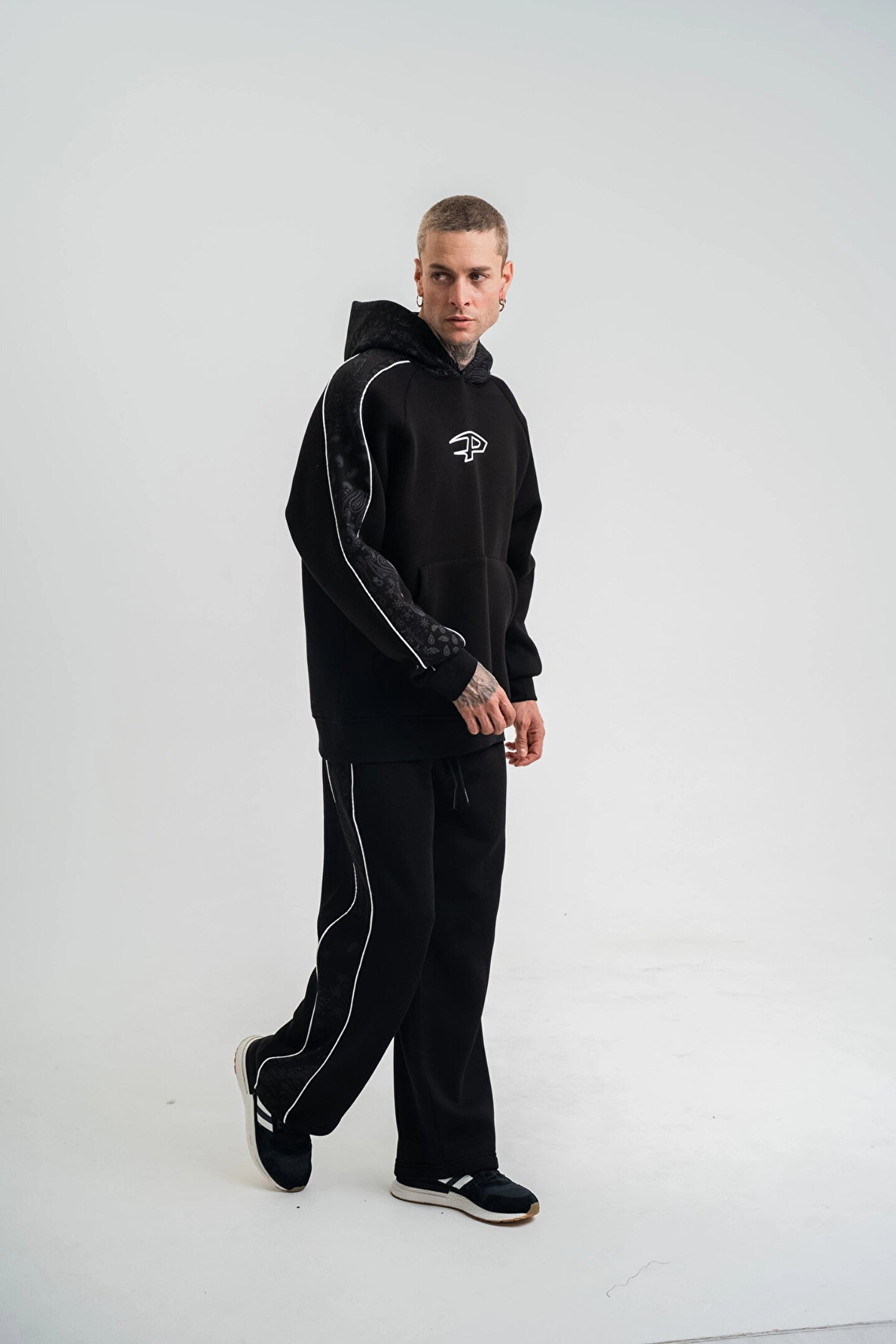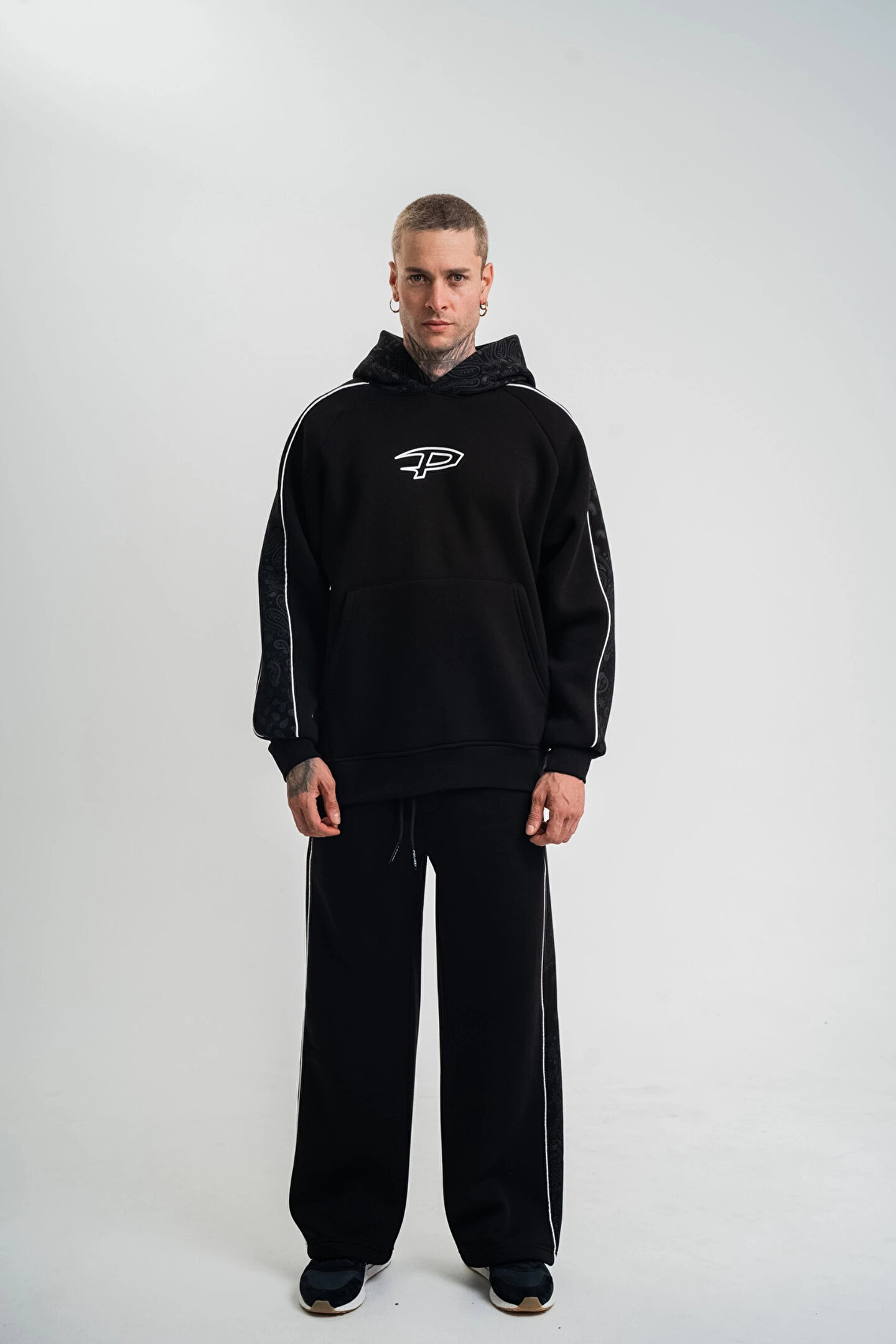 BB Uzun Kol Kapşonlu Ara Biyeli Baggy Eşofman Takım - Siyah