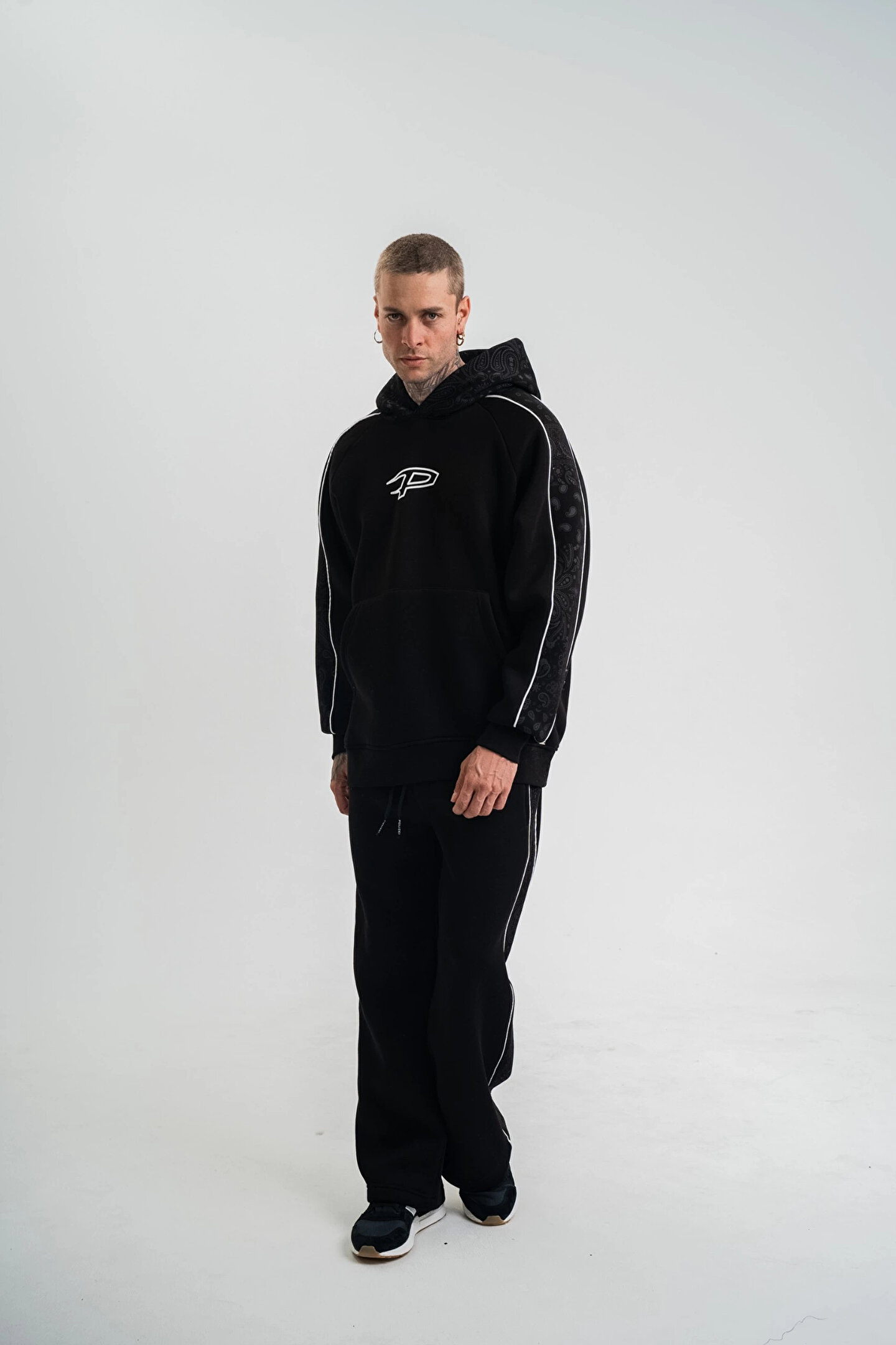 - Siyah renkli tasarımı ile her ortama uyum sağlayan, şık ve modern bir görünüm sunar.; - Kapüşonlu yaka tipi sayesinde hem stil sahibi hem de işlevsel bir kullanım imkanı sağlar.; - Uzun kollu yapısı ile mevsim geçişlerinde ideal konforu sunar.; - Uzun paça boyu, rahat hareket etme özgürlüğü ve şık bir siluet oluşturur.; - Yetişkin erkekler için özel olarak tasarlanmış, günlük kullanıma uygun rahat kesimiyle dikkat çeker.; - Türk menşeli olup, yerel üretim kalitesini yansıtır.; - Standart kol tipi, gün boyu rahatlık ve konfor sağlar.; - Pamuklu materyal kullanımı sayesinde yumuşak dokunuşu ve nefes alabilir yapısıyla cildinize nazik davranır.; - Regular paça tipi ile klasik ve zamansız bir tarz sunar.; - Casual/Günlük ortamlarda rahatlıkla tercih edebileceğiniz, basic koleksiyonun bir parçasıdır.; - Standart boy uzunluğu, farklı vücut tiplerine uyum sağlayarak ideal bir oturuş sunar.; - Yıkamalı ek özelliği ile dayanıklılığı artırarak uzun süreli kullanım imkanı tanır.; - Baskılı deseniyle dinamik ve trend bir görünüm kazandırır.; - Ter tutmayan kumaş özelliği sayesinde spor aktivitelerinde ve günlük hayatta maksimum konfor sağlar.; - Dokuma kumaş tipi, dayanıklılığı ve kaliteli dokusuyla öne çıkar.; - XL beden seçeneğiyle geniş beden aralığına hitap eder ve rahat bir kullanım sunar.