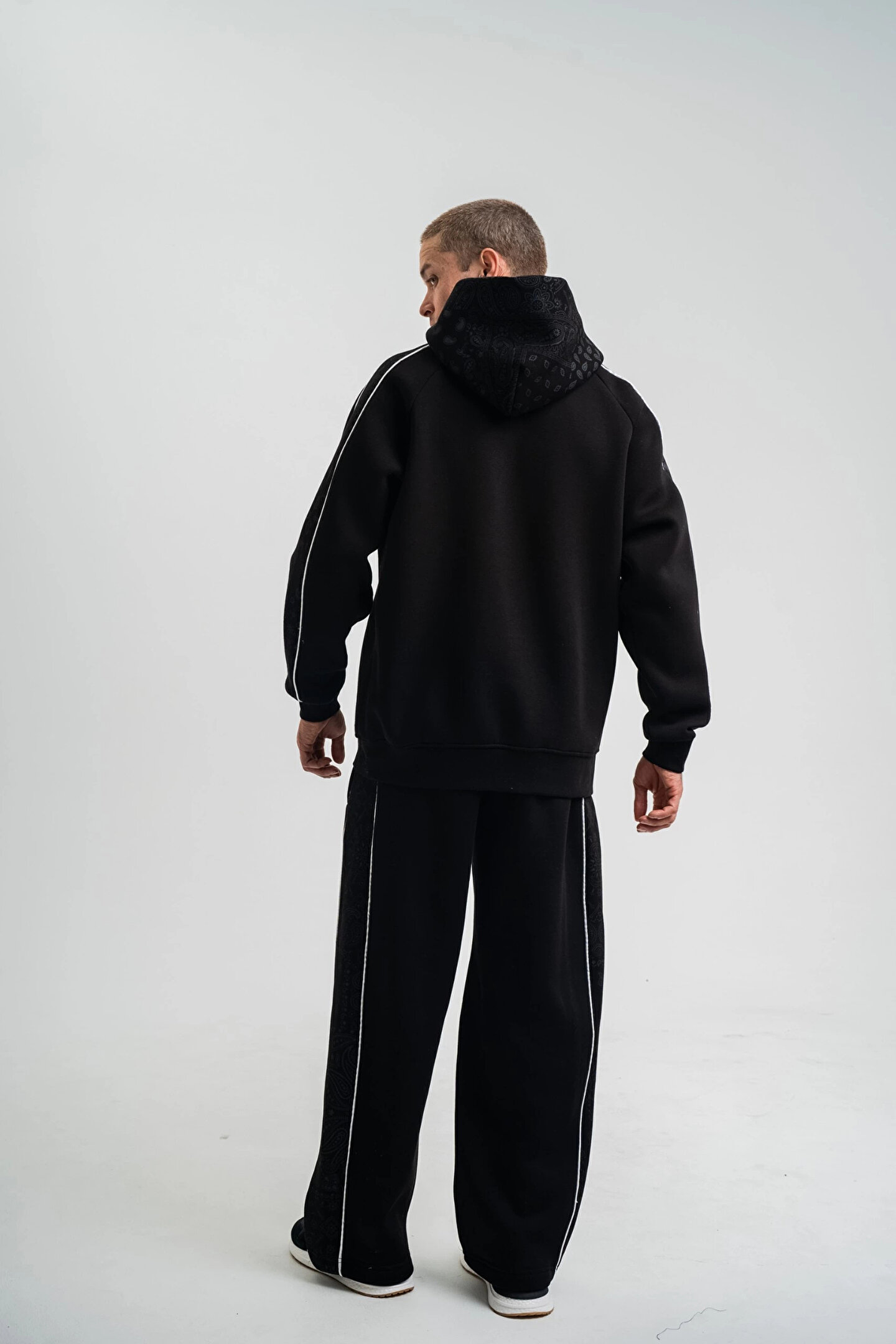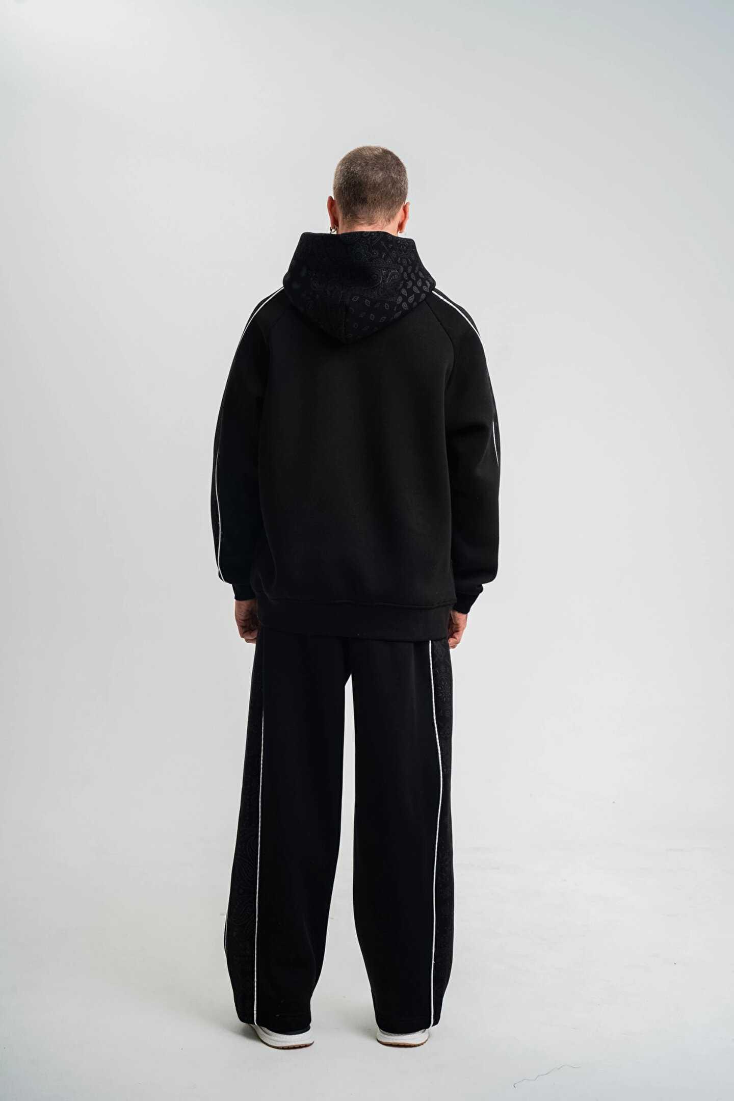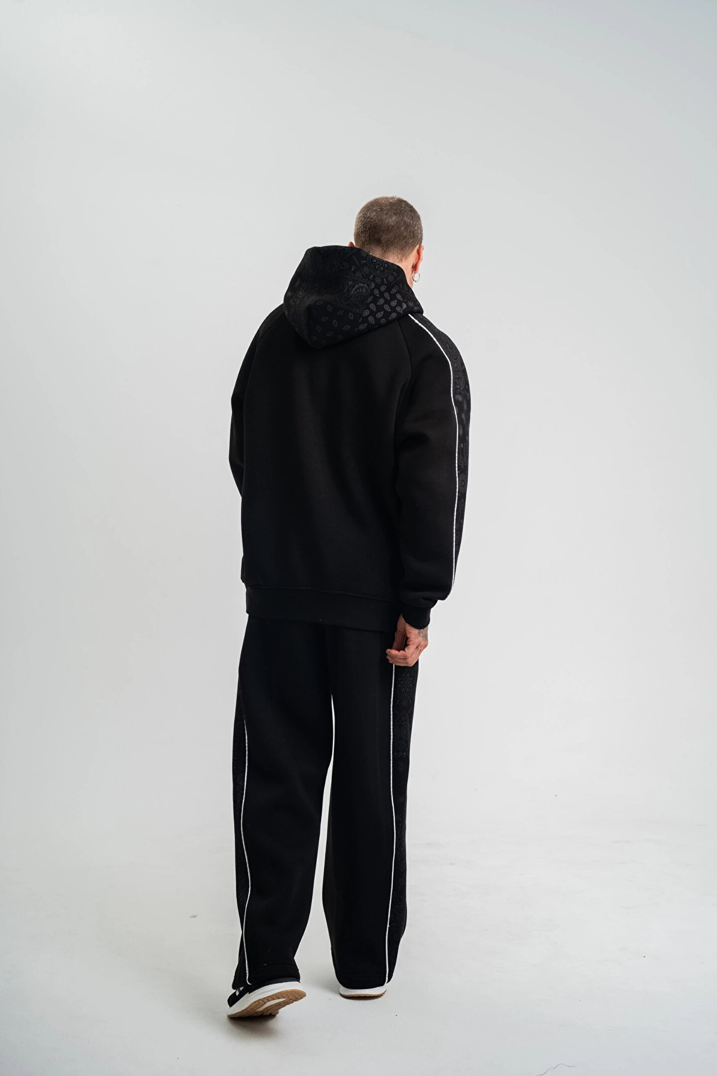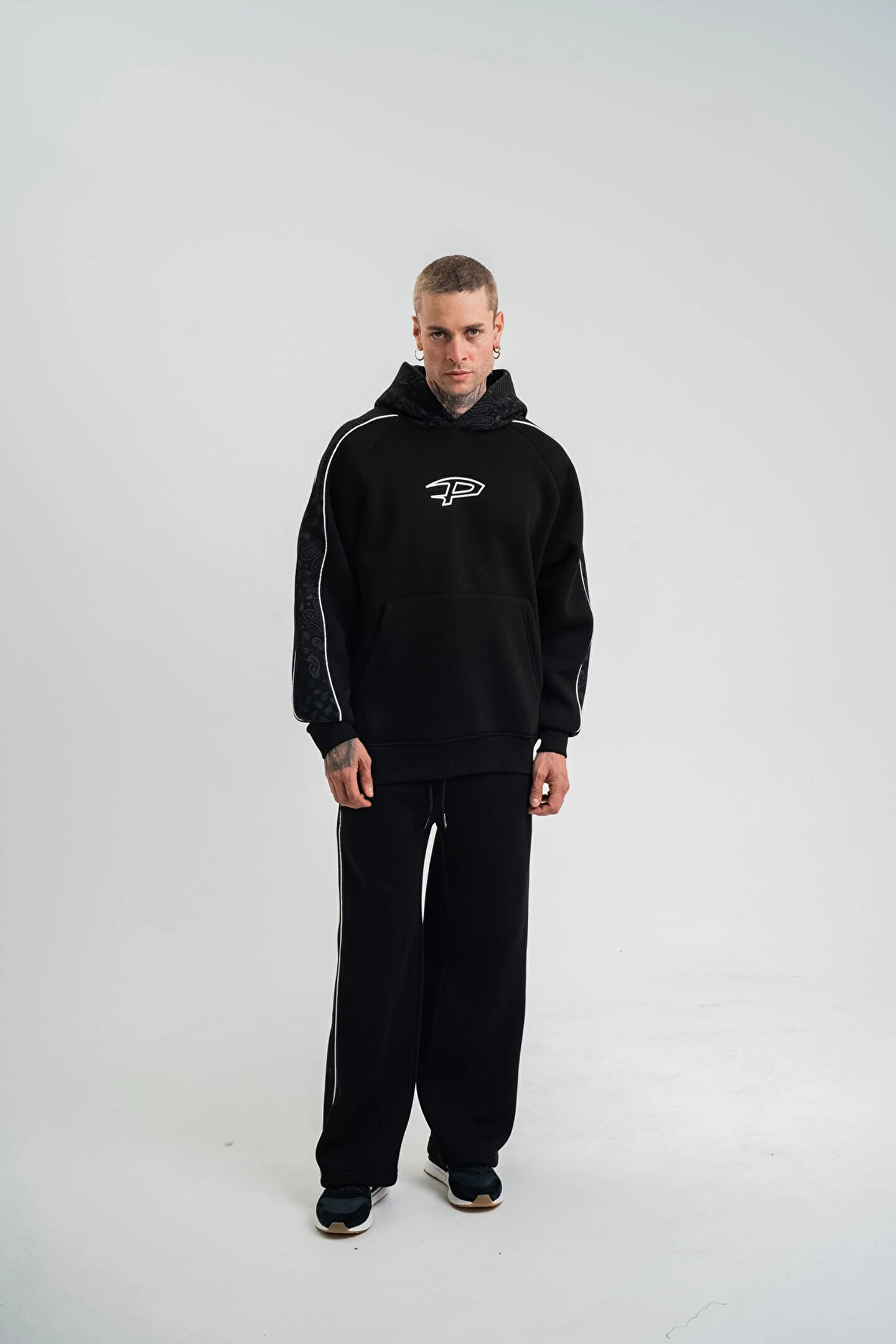 - Siyah renkli tasarımı ile her ortama uyum sağlayan, şık ve modern bir görünüm sunar.; - Kapüşonlu yaka tipi sayesinde hem stil sahibi hem de işlevsel bir kullanım imkanı sağlar.; - Uzun kollu yapısı ile mevsim geçişlerinde ideal konforu sunar.; - Uzun paça boyu, rahat hareket etme özgürlüğü ve şık bir siluet oluşturur.; - Yetişkin erkekler için özel olarak tasarlanmış, günlük kullanıma uygun rahat kesimiyle dikkat çeker.; - Türk menşeli olup, yerel üretim kalitesini yansıtır.; - Standart kol tipi, gün boyu rahatlık ve konfor sağlar.; - Pamuklu materyal kullanımı sayesinde yumuşak dokunuşu ve nefes alabilir yapısıyla cildinize nazik davranır.; - Regular paça tipi ile klasik ve zamansız bir tarz sunar.; - Casual/Günlük ortamlarda rahatlıkla tercih edebileceğiniz, basic koleksiyonun bir parçasıdır.; - Standart boy uzunluğu, farklı vücut tiplerine uyum sağlayarak ideal bir oturuş sunar.; - Yıkamalı ek özelliği ile dayanıklılığı artırarak uzun süreli kullanım imkanı tanır.; - Baskılı deseniyle dinamik ve trend bir görünüm kazandırır.; - Ter tutmayan kumaş özelliği sayesinde spor aktivitelerinde ve günlük hayatta maksimum konfor sağlar.; - Dokuma kumaş tipi, dayanıklılığı ve kaliteli dokusuyla öne çıkar.; - XL beden seçeneğiyle geniş beden aralığına hitap eder ve rahat bir kullanım sunar.