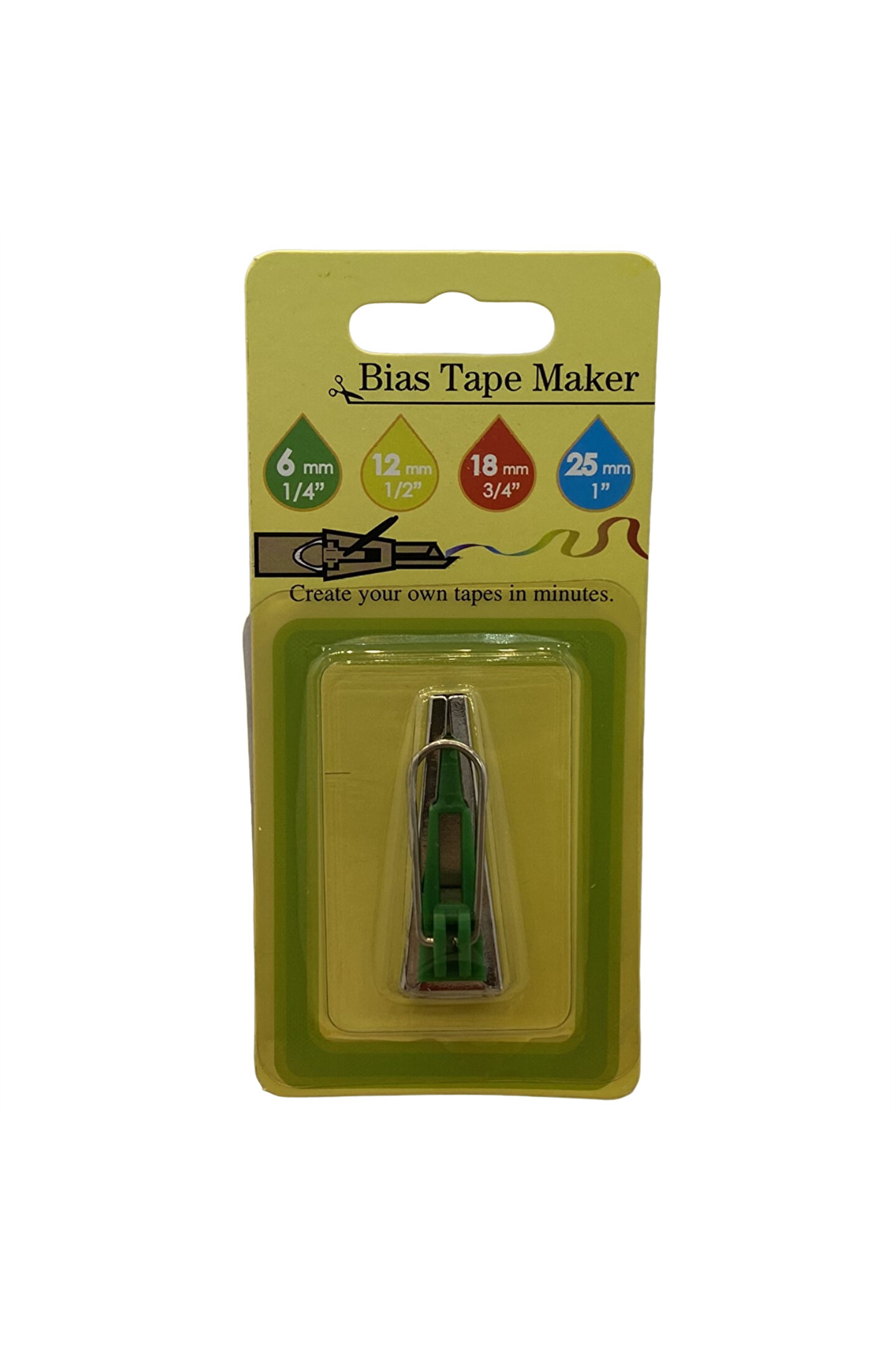 Ürün Adı: El Biye Kıvırma Aparatı 6mm Yeşil / LS-120 1/4" Marka: BDR Menşei: ÇİN.; ; CUM.; ; Açıklama: El tipi biye kıvırma aparatı.; ; Normal kumaşlarda 13mm giriş yapılır 6mm çıkış oluşur.; ; İnce kumaşlarda 15mm giriş yapılır 6mm çıkış oluşur.; ; Hazırlanacak kumaşlar 45 derece açı ile kesilmelidir.; ; Aparat el ile tutularak kontrol edilir.; ; Kumaş aparata biz yardımı ile yada sivri bir cisimle itilerek konulur.; ; Biye oluşunca ütü yapılarak biye oluşturulur.; ; Dikiş makinesi ile bir bağlantısı yoktur.;
