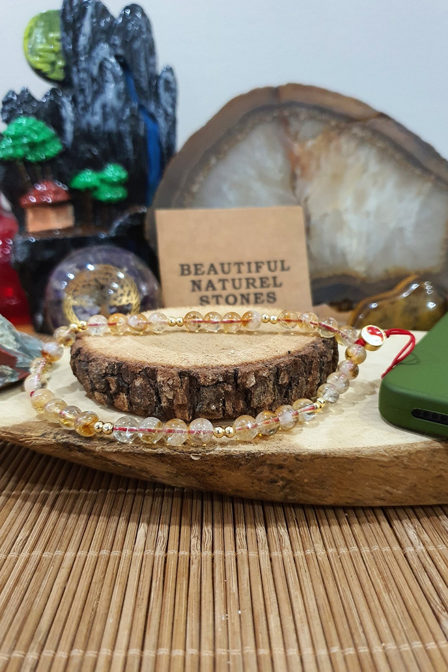 Sitrin Doğal Taş Telefon Ipi Charm ( Para , Bolluk , Bereket )