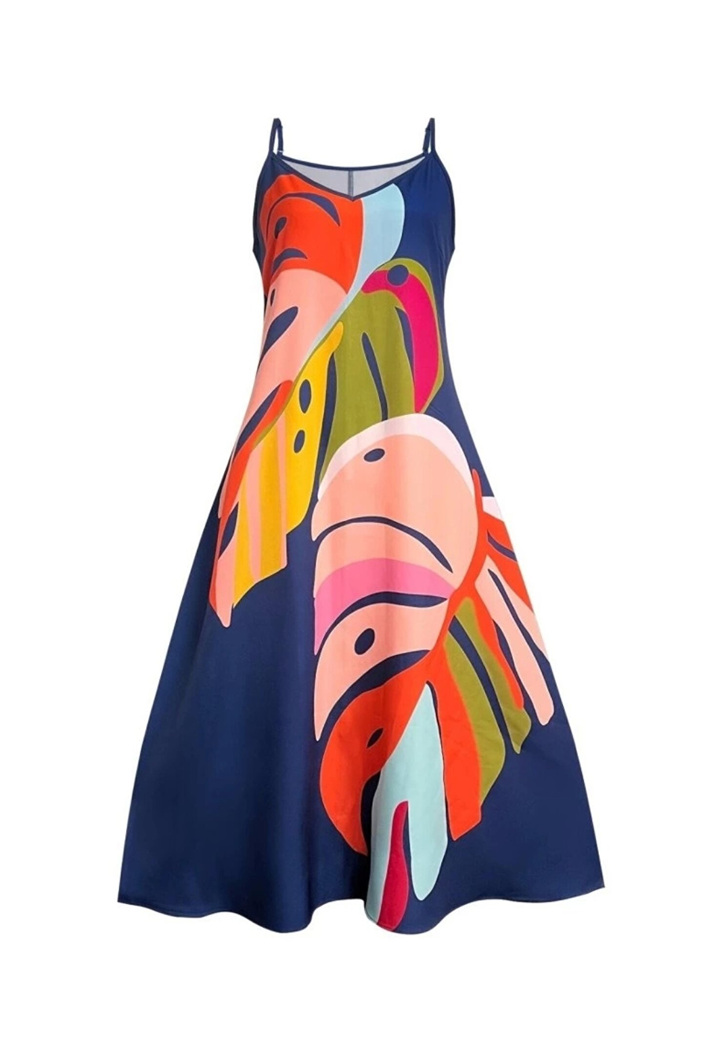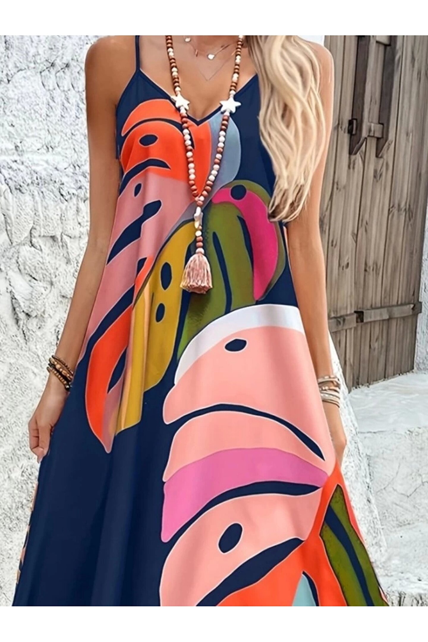 BEFAON Kadın Ip Askılı V Yakalı Desenli Süprem Maxi Elbise