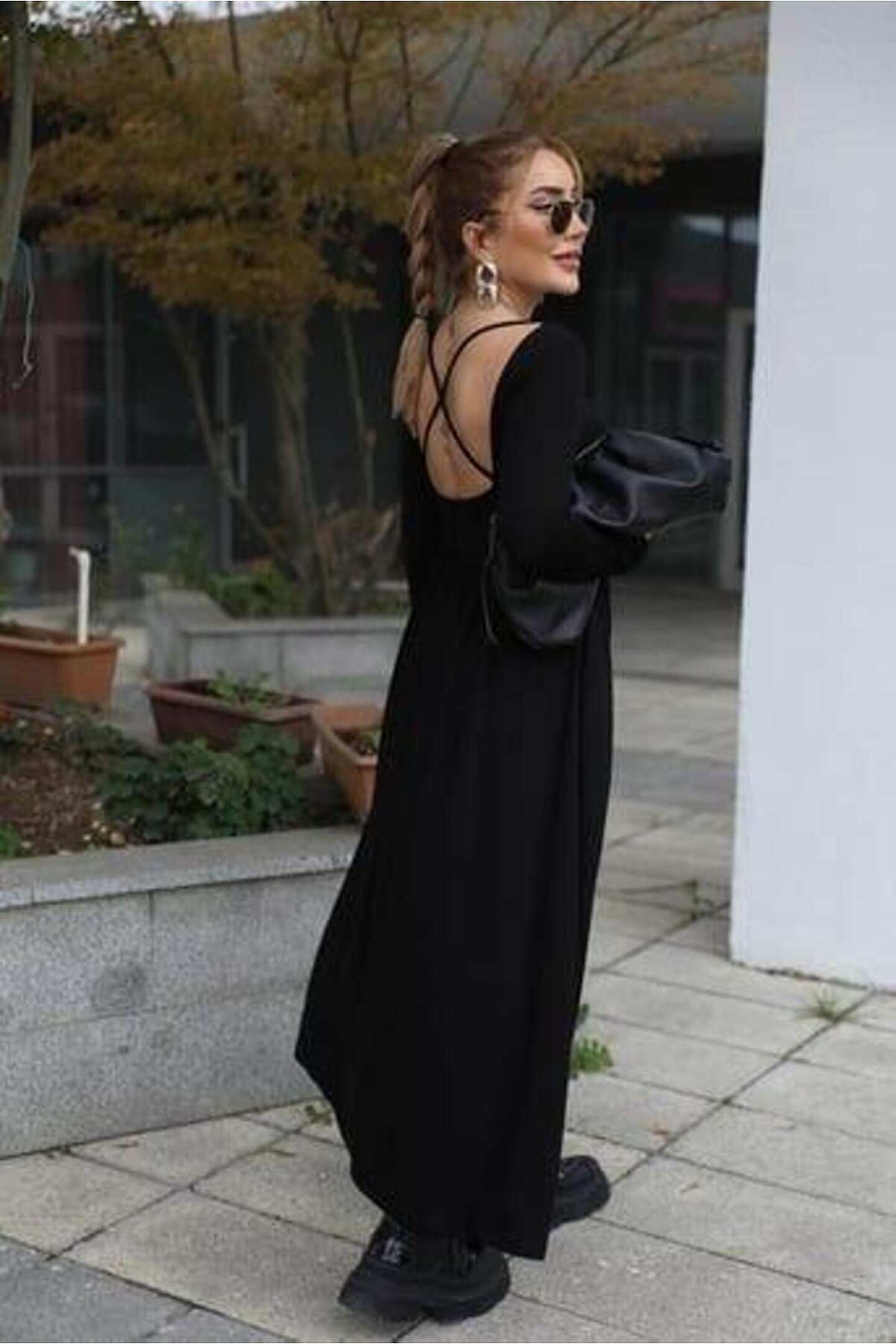 Kadın Kayık Yaka Sırt Dekoltesi Ve Yırtmaç Detay Maxi Boy Elbise