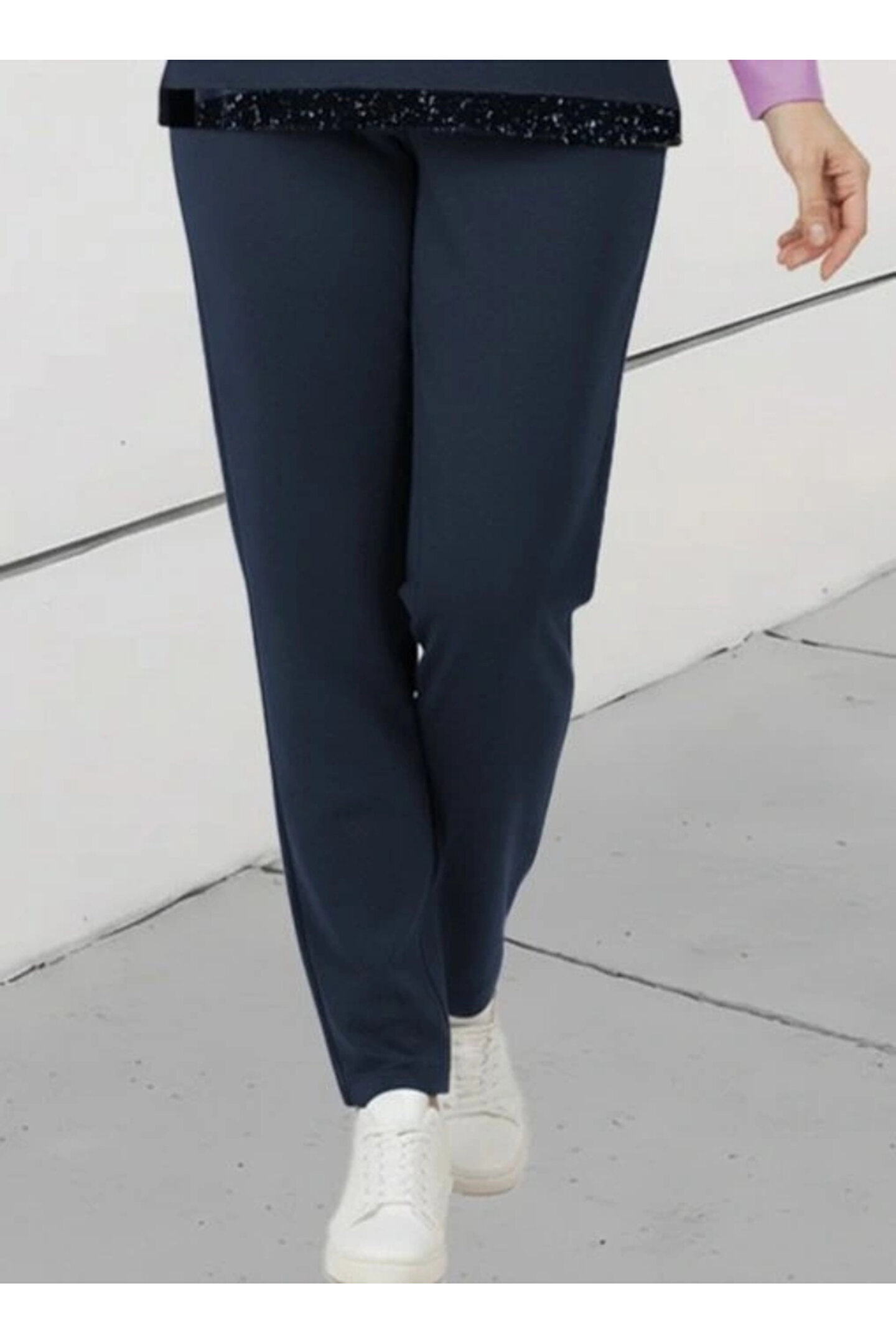 Kadın Uzun Kollu Bisiklet Yaka çizgili Desen Iki Iplik Bluz Ve Pantolon Ikili Takım