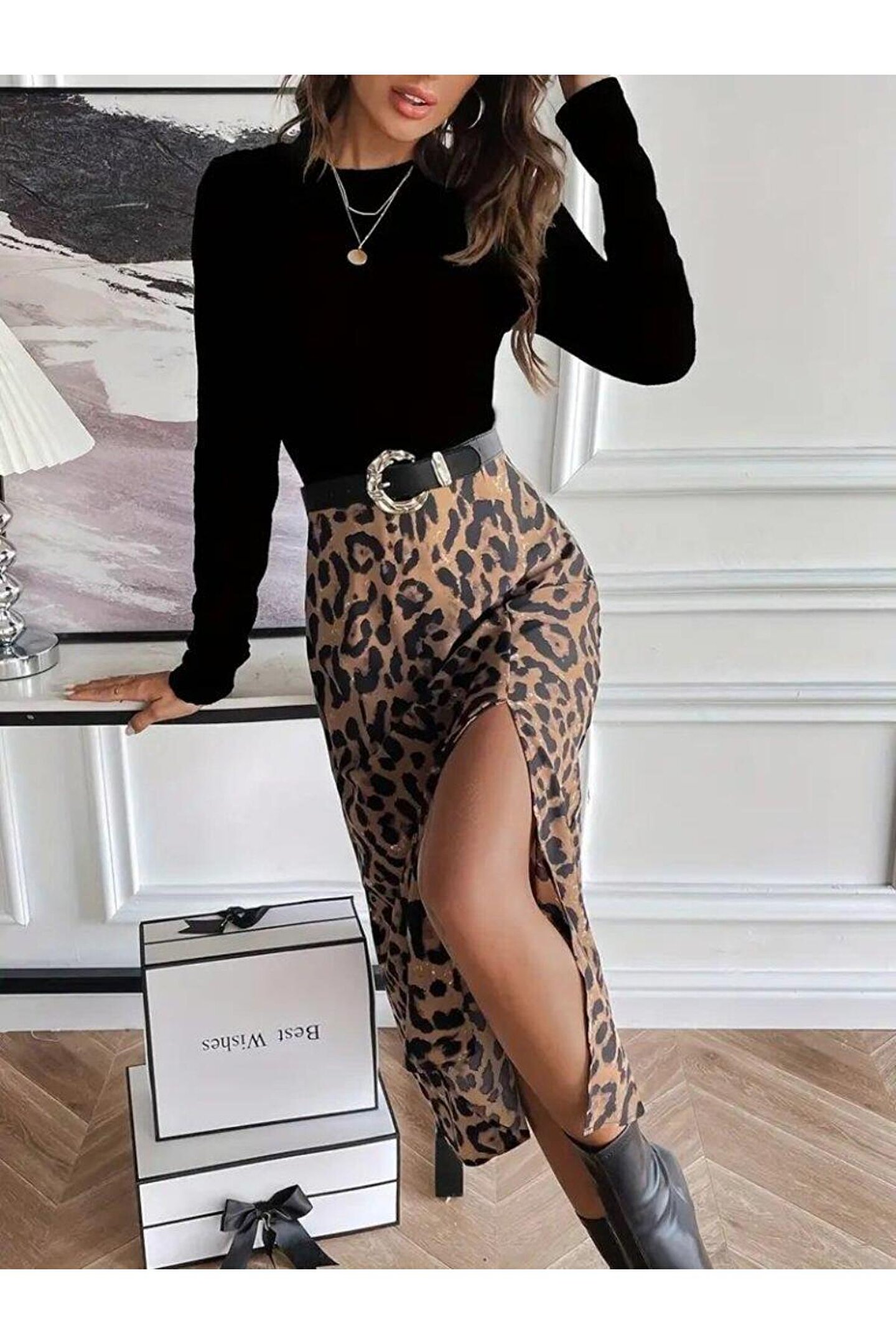 BEFAON Kadın Uzun Kollu Bisiklet Yaka Ithal Krep Bluz Alt Desenli Modal Midi Elbise