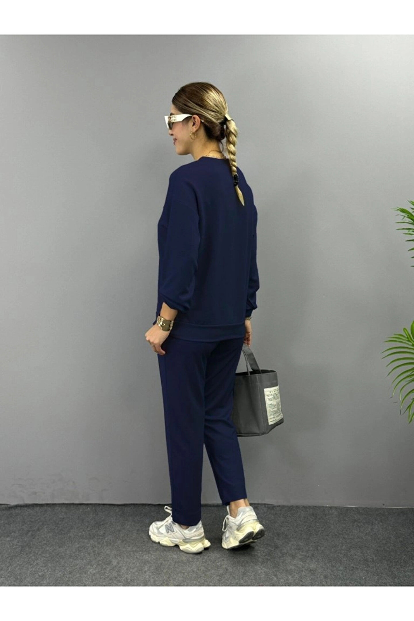 BEFAON Kadın Uzun Kollu Bisiklet Yaka Viskon Iki Iplik Bluz Ve Pantolon Ikili Takım