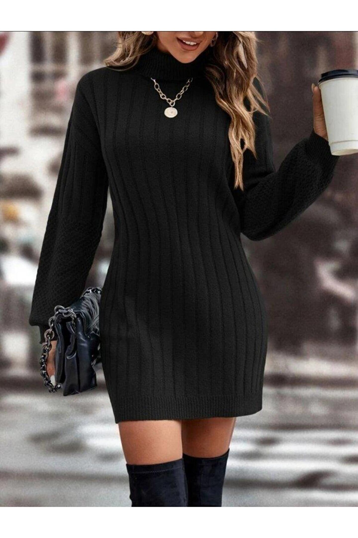 Kadın Uzun Kollu Boğazlı Uzun Balon Kol Triko Mini Elbise
