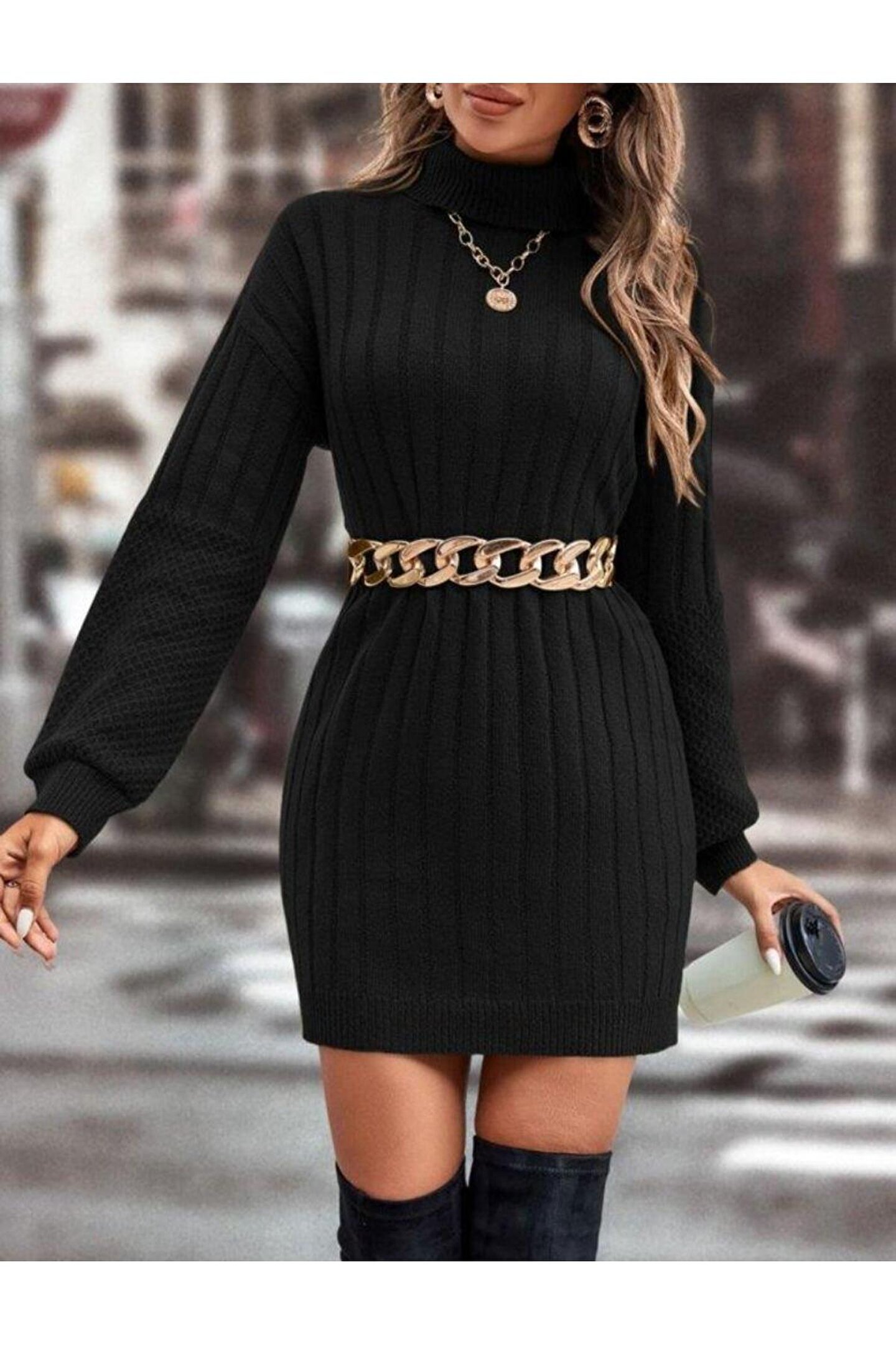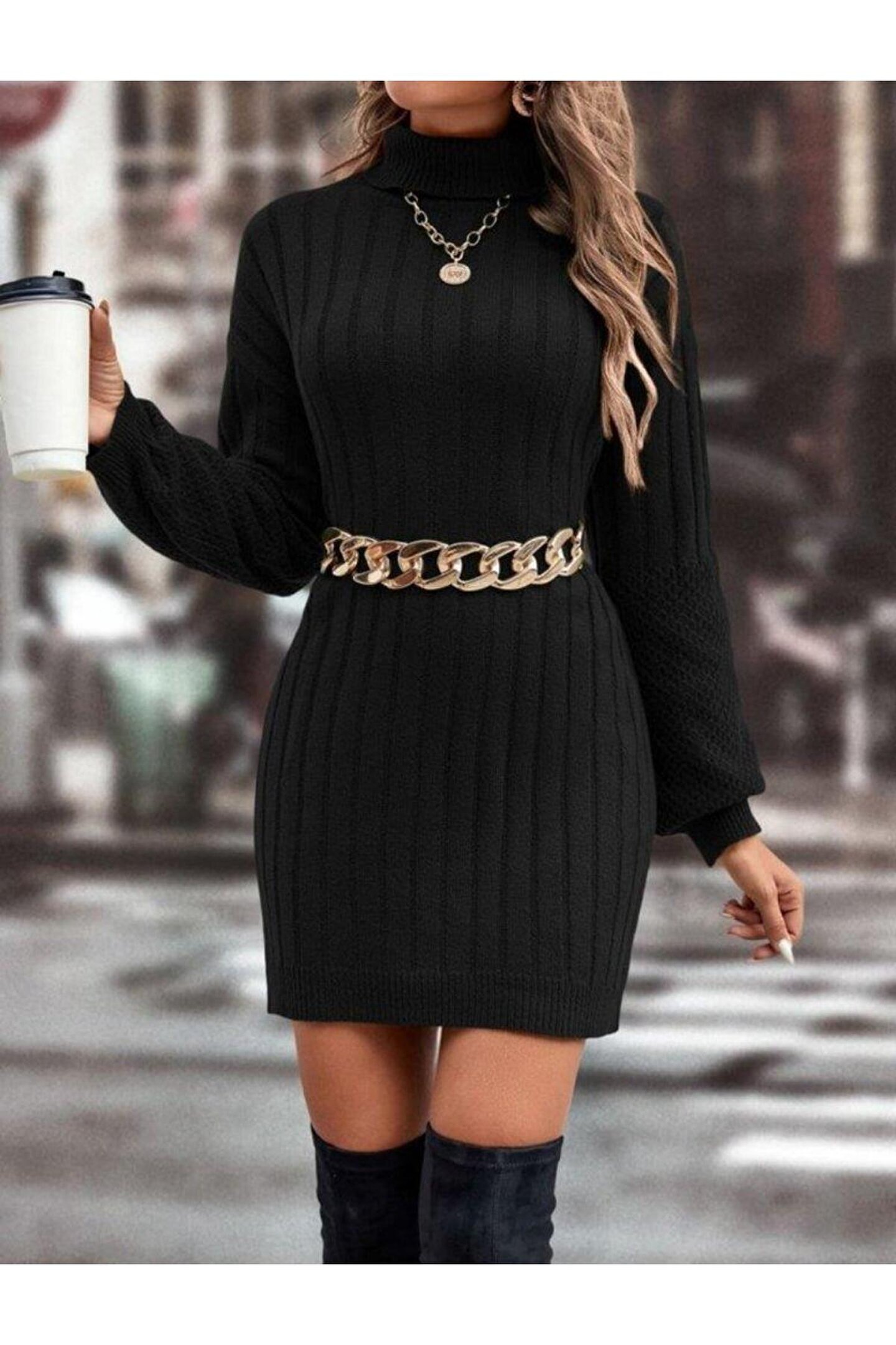 BEFAON Kadın Uzun Kollu Boğazlı Uzun Balon Kol Triko Mini Elbise