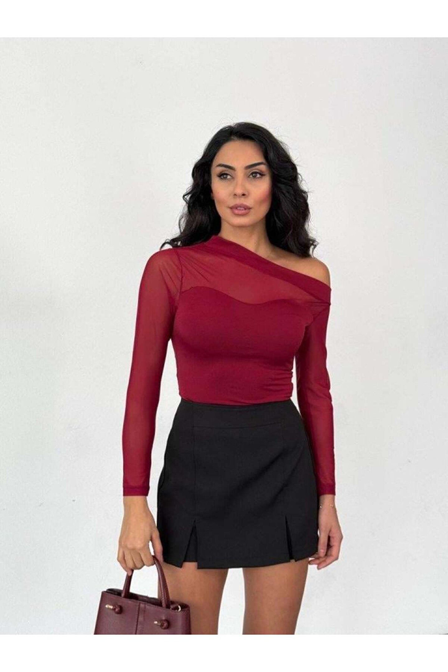 BEFAON Kadın Uzun Kollu Omuz Dekoltesi Ve Transparan Tül Detay Bluz