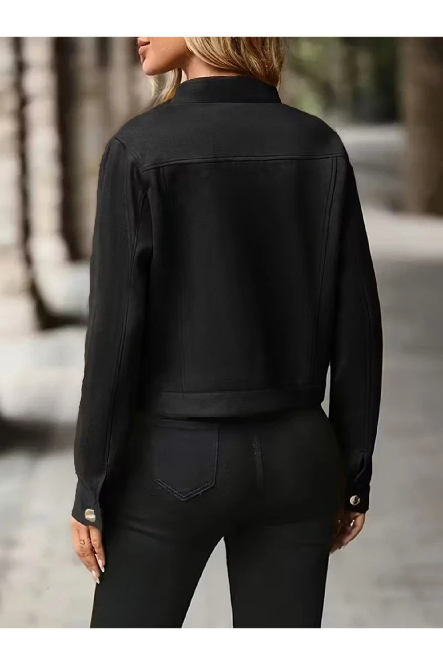 Kadın Uzun Kollu önden Düğmeli Kısa Süet Ceket