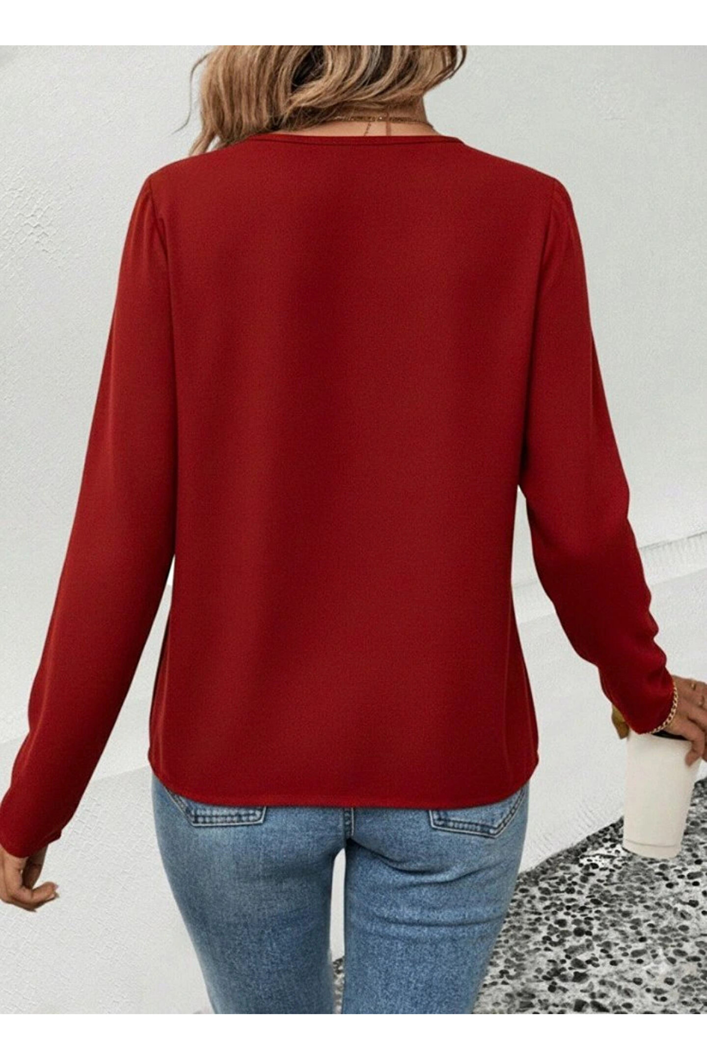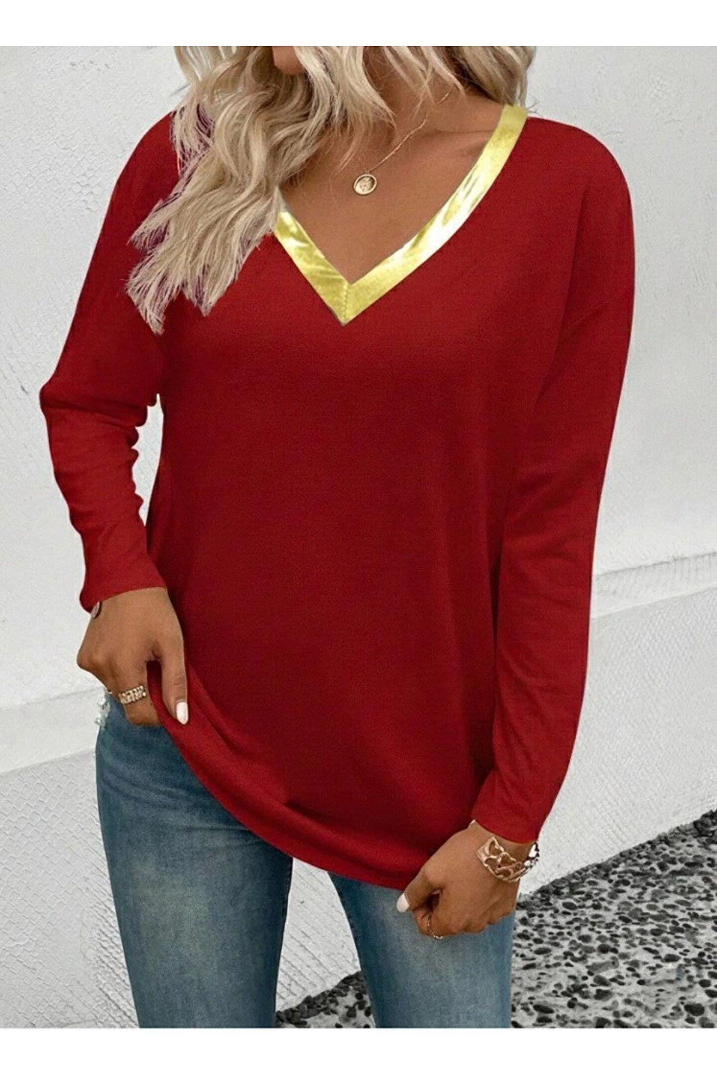 BEFAON Kadın Uzun Kollu V Parlak Yaka Detaylı Viskon Bluz