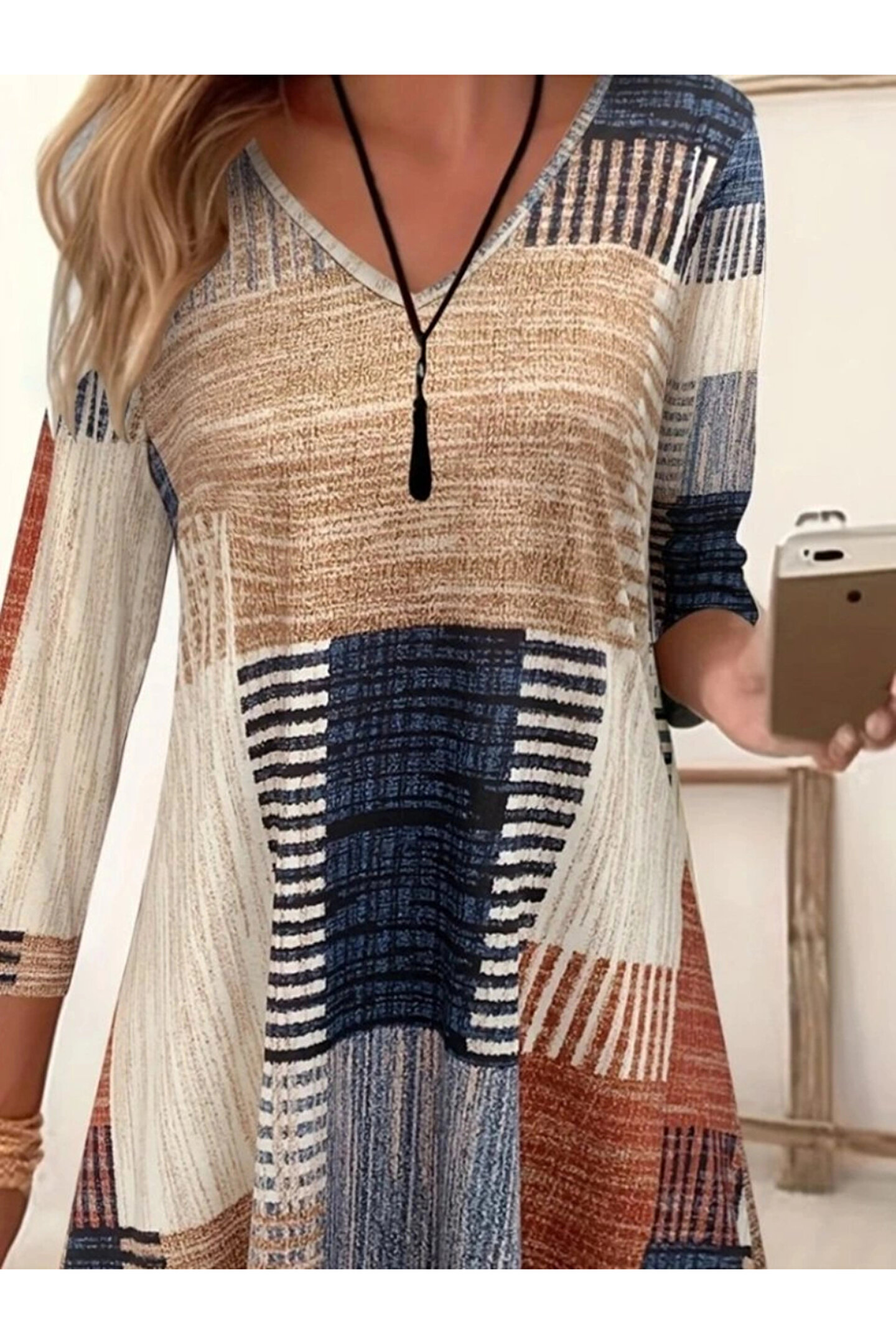 BEFAON Kadın Uzun Kollu V Yaka Süprem Mini Elbise