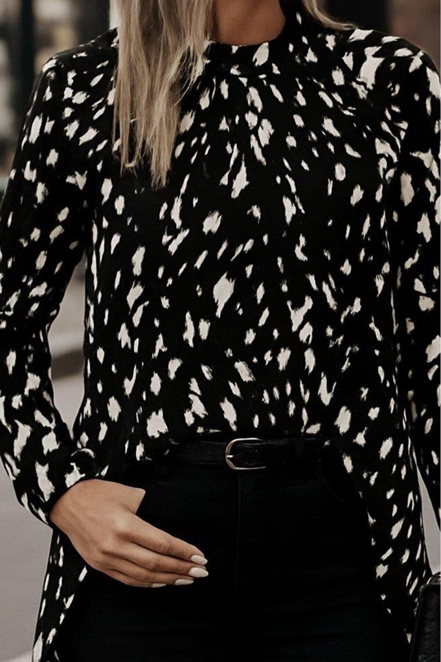 BEFAON Kadın Uzun Kollu Yarı Balıkçı Yaka Desenli Dokuma Bluz